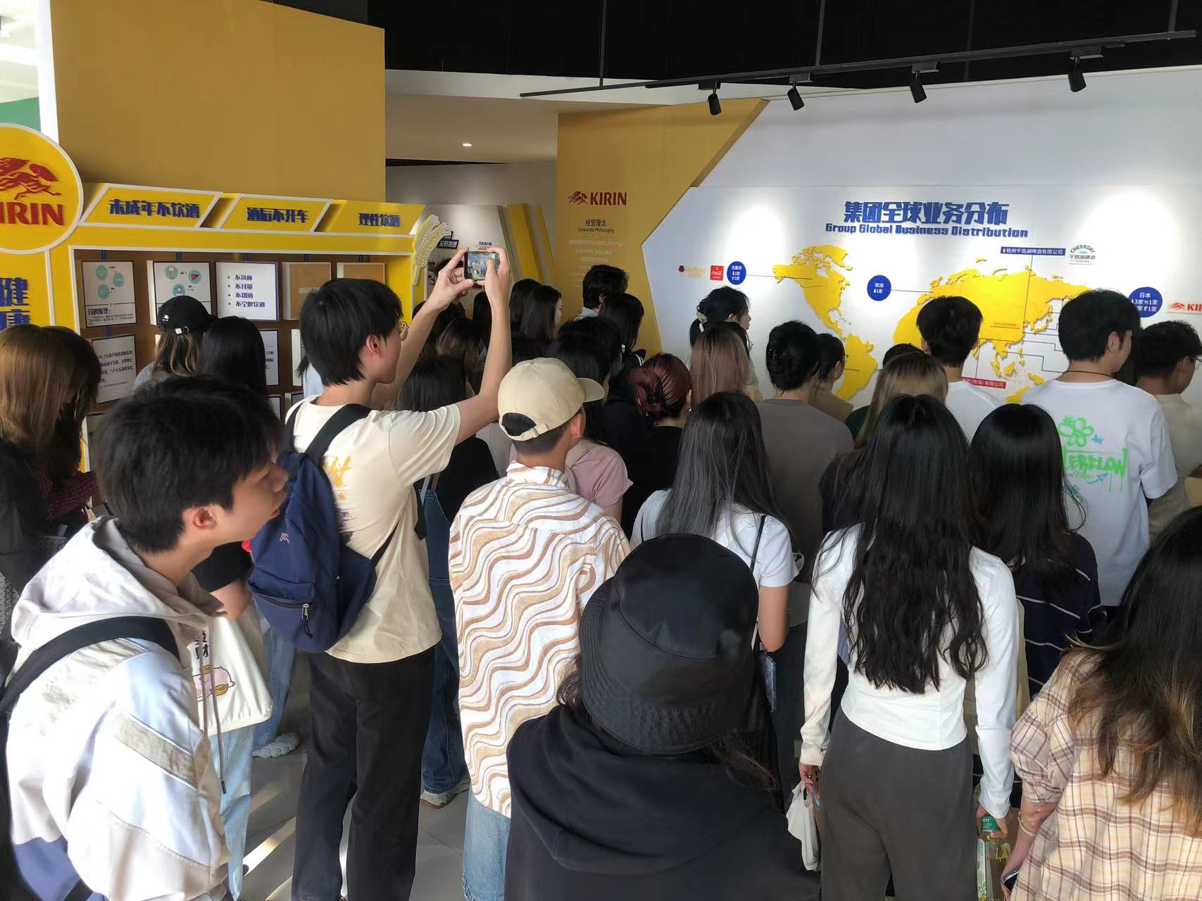 在活动的尾声,学生们来到了麒麟啤酒厂的体验中心,切身地感受啤酒文化的魅力。在讲解员的介绍下,同学们分别品尝了五瓶麒麟啤酒厂生产的不同品牌的啤酒,口感有浓烈的、清爽的、偏甜的和偏苦的。