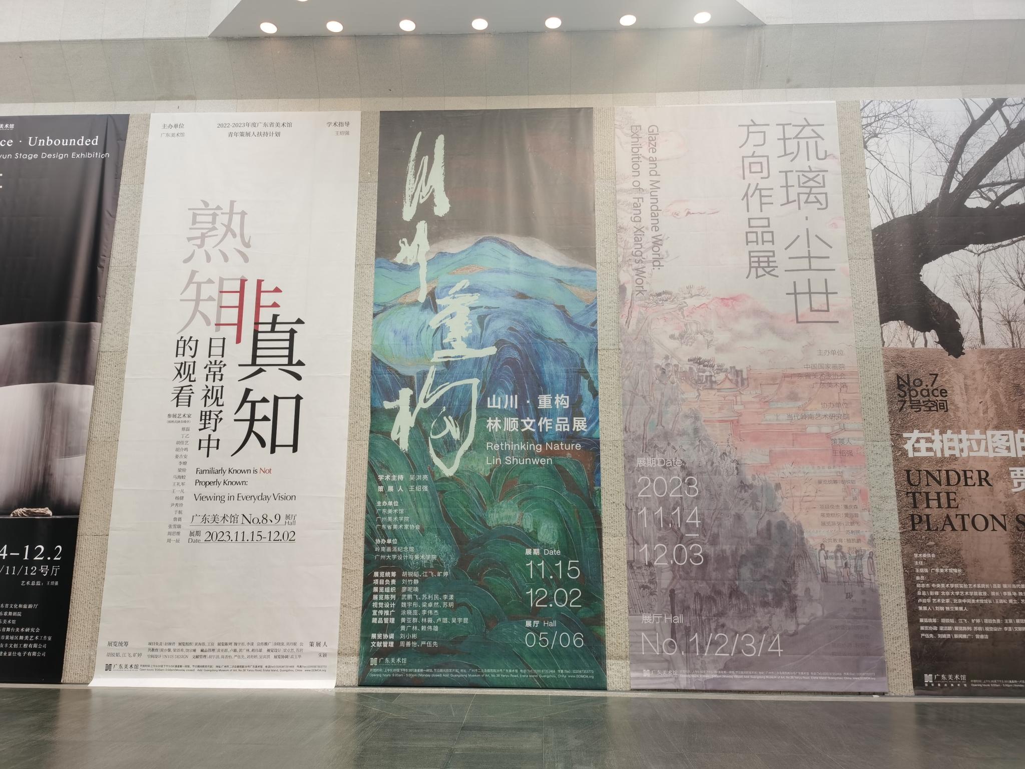 在广东美术馆工作人员黄海蓉女士的介绍和导览下,同学们开始了艺术鉴赏之旅。展览展出了许多艺术家的作品,如“山川·重构-林顺文作品展”、“熟知非真知-日常视野中的观看”、“空间·无界-秦立运舞台设计作品展”、“7号空间-在柏拉图的光照下-贾淳作品展”等。