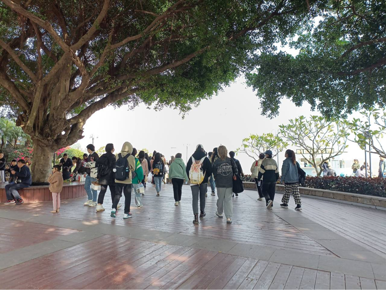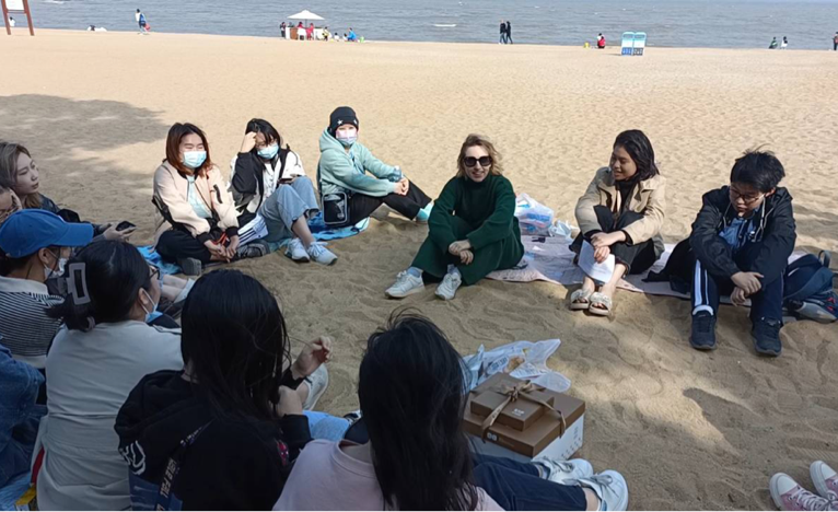 同学们围坐在沙滩上,进行自我介绍以及才艺展示。精彩的表演,让现场掌声雷动。