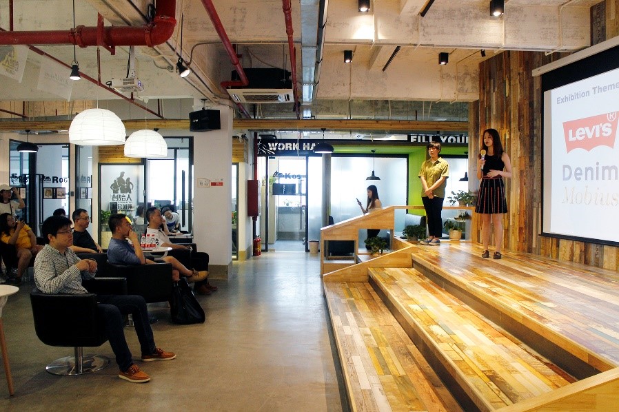 随后,大家一同到创始人众创空间观展,经过学生们的精心布置,本就舒畅自在的空间变得更加富有艺术气氛与设计感,大家都对学生的创意感到十分惊喜。随后两校学生进行了现场作品提案。