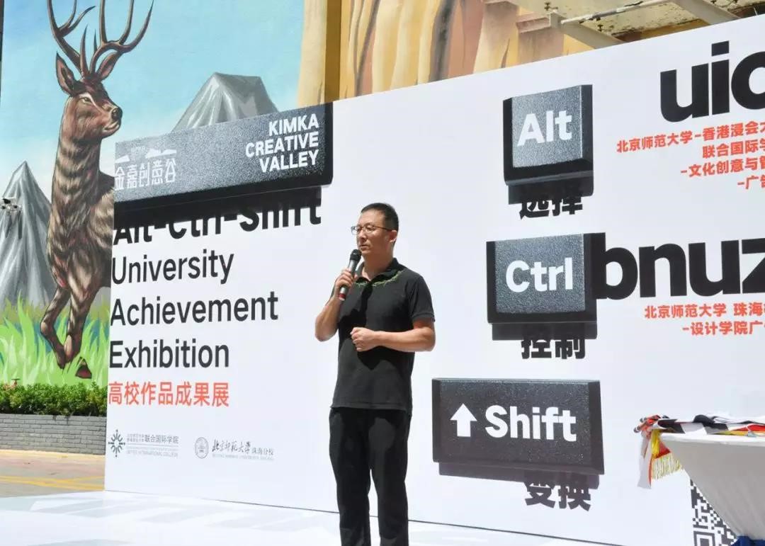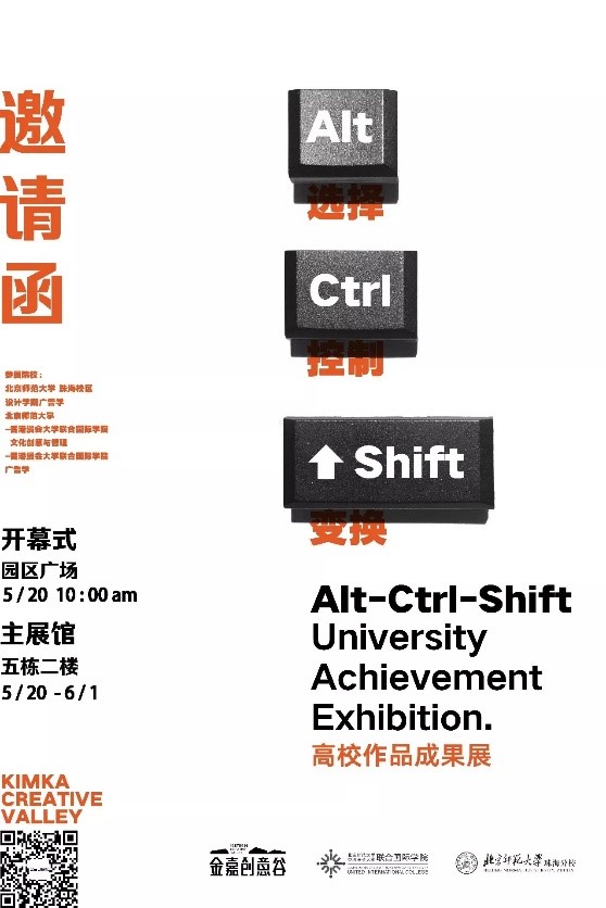 2018年5月20日上午,在万众期待中,由金嘉创意谷,北京师范大学-香港浸会大学联合国际学院文化创意与管理专业(以下简称:CCM)、广告学专业和北京师范大学珠海校区设计学院广告学系联合举办的,以“Alt- Ctrl- Shift 选择 控制 变换”为主题的高校联合作品成果展在珠海市金嘉创意谷园区广场巨幅壁画前隆重开幕。