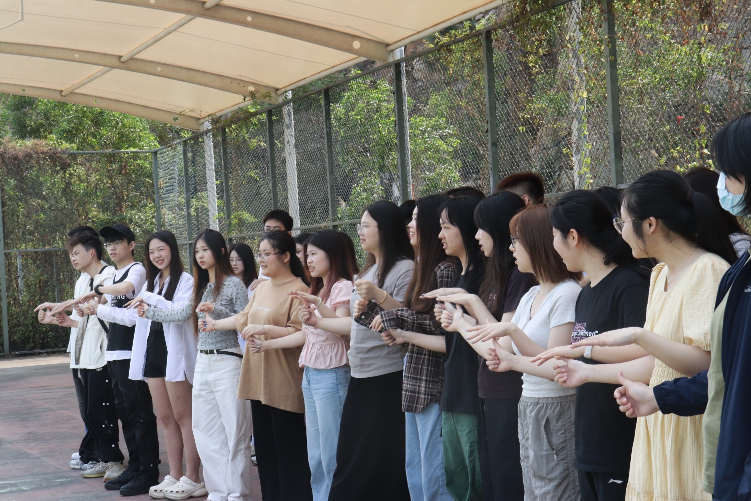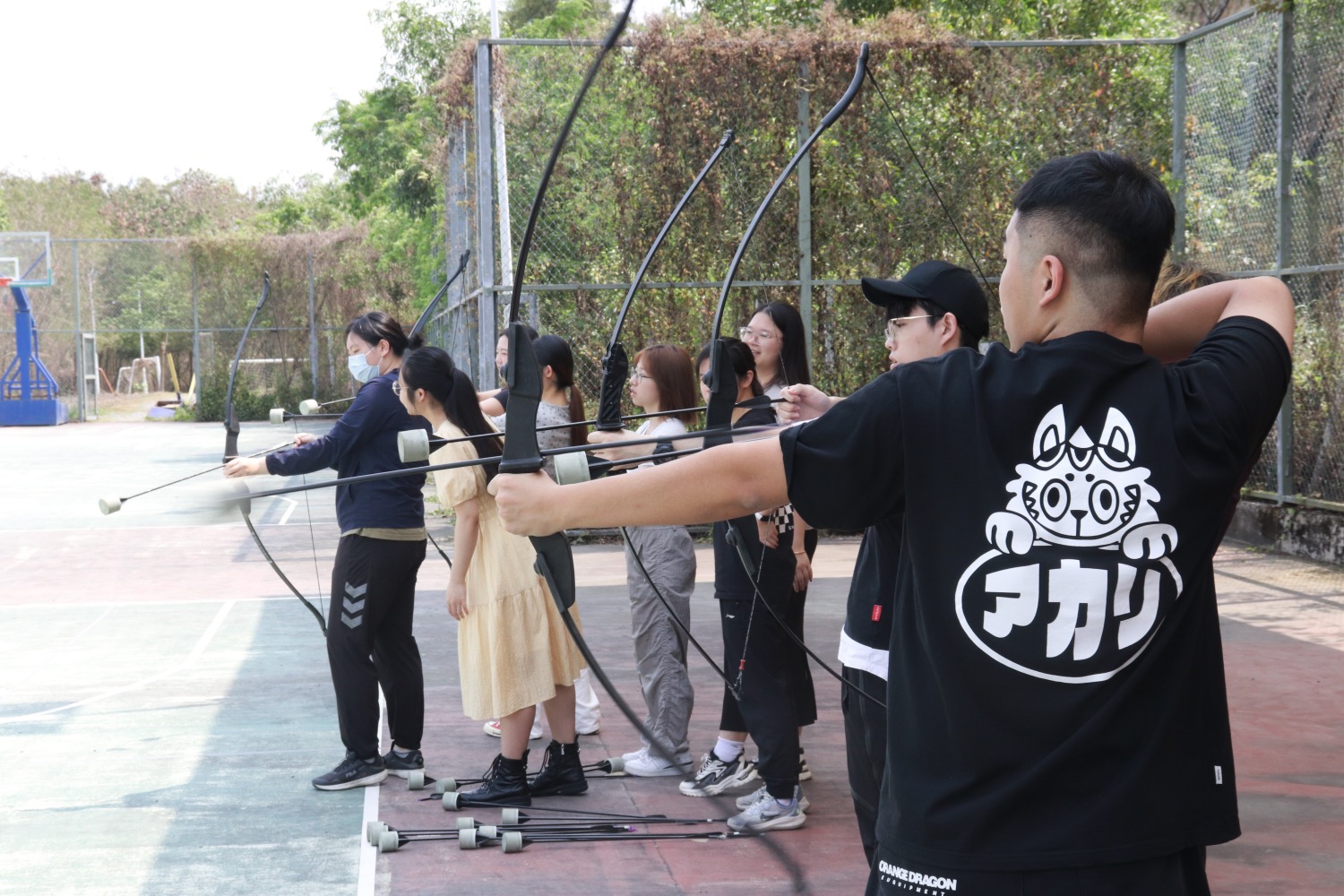接下来星乐度露营小镇负责户外研学教育的Nick老师给同学们介绍了营地教育的特点是探索,极限,实践,能提升参与者的领导力,管理能力等软硬技能。并且带领同学们体验了攻防箭的游戏,培养同学们的团队协作能力。