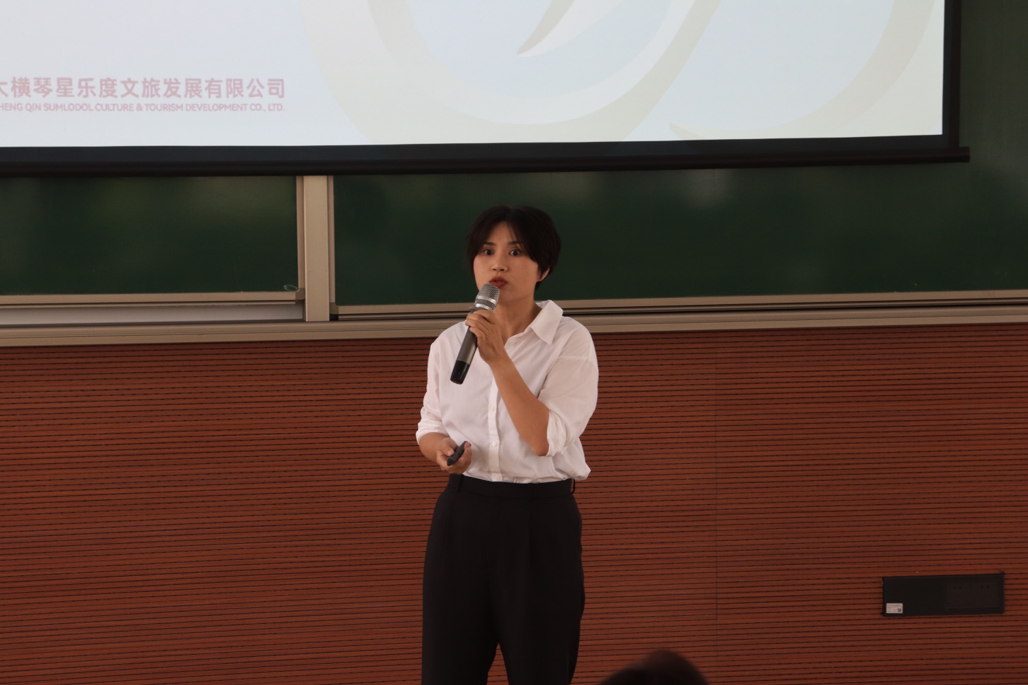 李莎女士介绍了星乐度的名字由来: 在能看到星星的地方快乐的度过时光。李莎女士强调了讲故事的能力在实际工作例如IP形象及运用,文创运营,自媒体内容运营中的重要性。她为同学们讲解了如何为产品赋予IP和消费者心理内容意义。