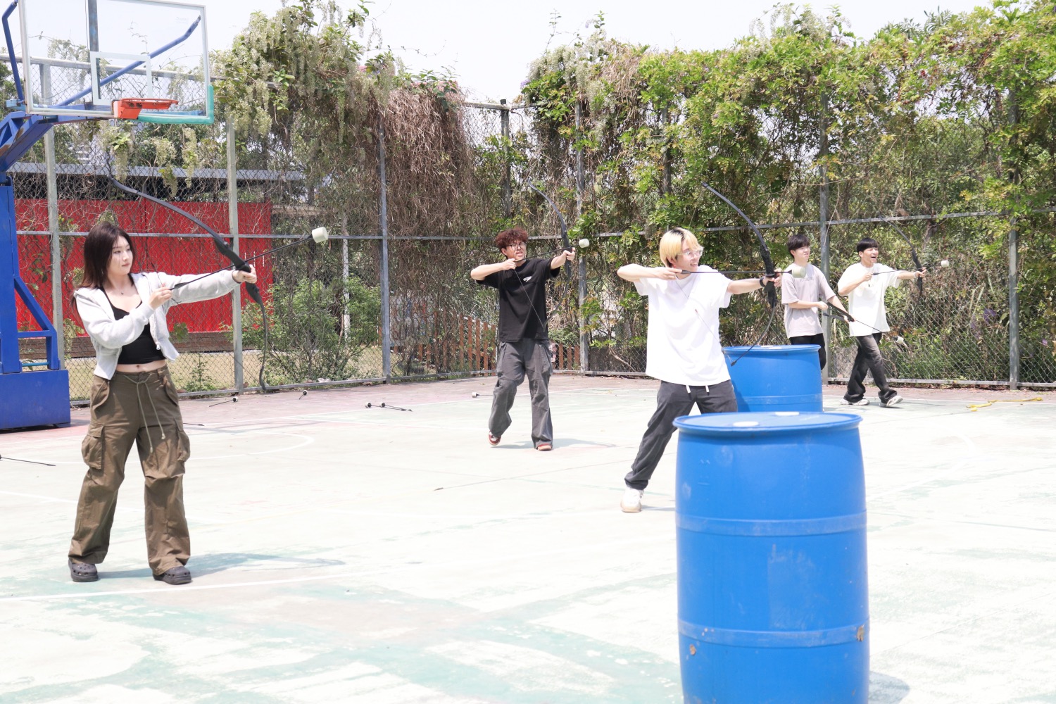 户外研学老师带领同学们体验了攻防箭的游戏