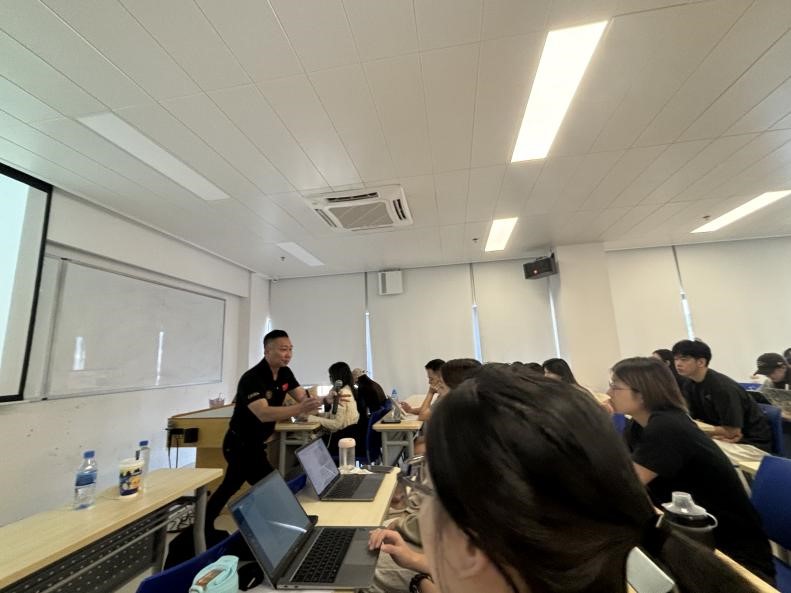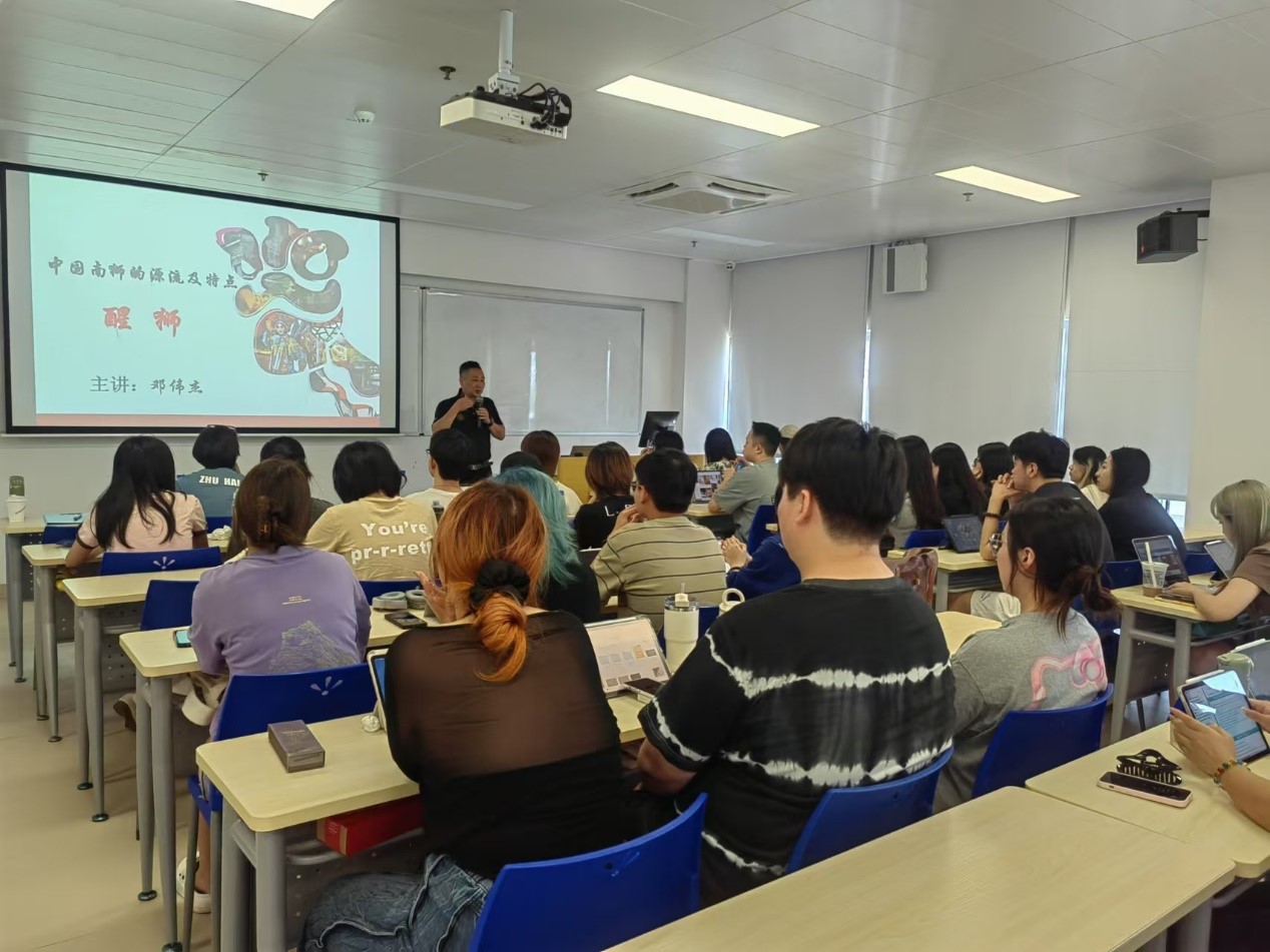 2024年10月8日,CCM4053文化遗产与旅游课程万婉琪老师邀请了中国龙狮运动协会宣传与推广委员会主任、佛山市龙狮运动协会会长、国家级非物质遗产(广东醒狮)佛山市代表性传承人邓伟杰先生来到课堂与同学们进行了一场别开生面的传统非遗文化讲座。