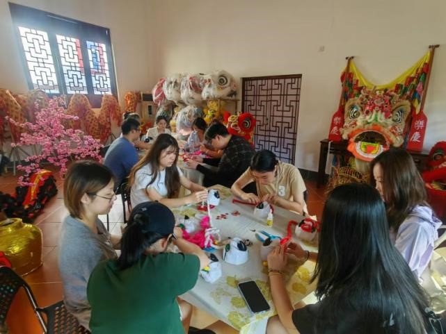 学生正在DIY自己的醒狮狮头