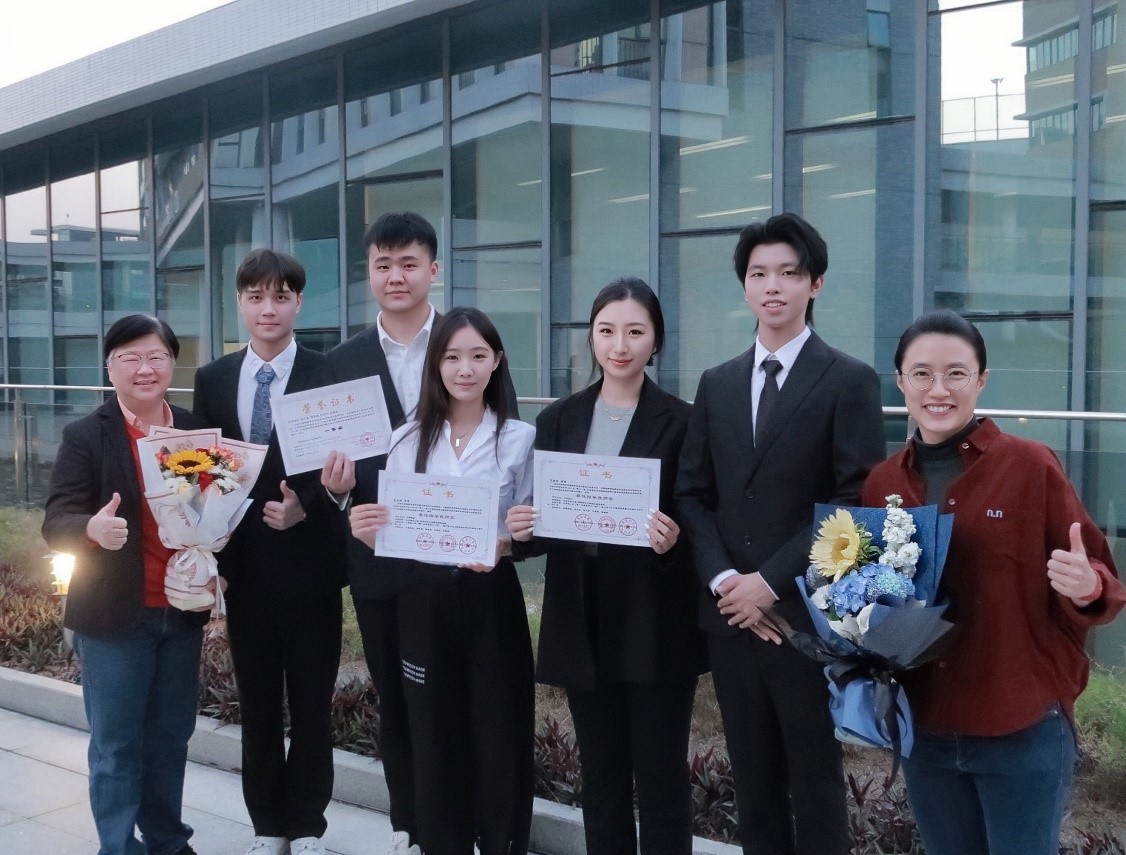 本次参赛团队成员来自不同专业背景,各具专长。除了前文提及的两位来自我院的师生外,还包括22 级市场营销管理专业(MKT)的张雪佳怡、张升豪、胡茂强、22级公共关系与广告学(PRA)的何昊阳同学,及工商管理学院(FBM)李运桦老师(同获最佳指导教师奖)。谈及参赛心得,队员们感慨万千。他们表示,此次大赛不仅是专业知识的深度试炼,更是综合素质的全面提升。在备赛过程中,团队成员们全身心投入,历经无数个日夜的头脑风暴、方案打磨与模拟演练。面对复杂多变的竞争环境,他们始终坚守初心,砥砺前行。每一次的观点碰撞都激发出创新的火花,每一回的困难挑战都转化为成长的基石。