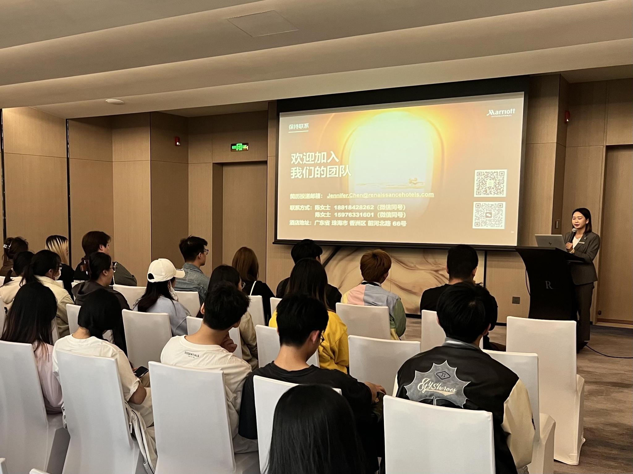 在活动的最后,酒店助理人力资源经理陈春幸女士还为学生提供了专门的问答环节。学生通过从业人员的经验之谈,对关于酒店行业以及酒店管理相关职业的疑问得到了解答。中海万丽酒店所规划的参观行程用最直接的方式让学生了解到酒店行业的工作,同时也为学生对酒店行业的学习和应用搭起了桥梁。
