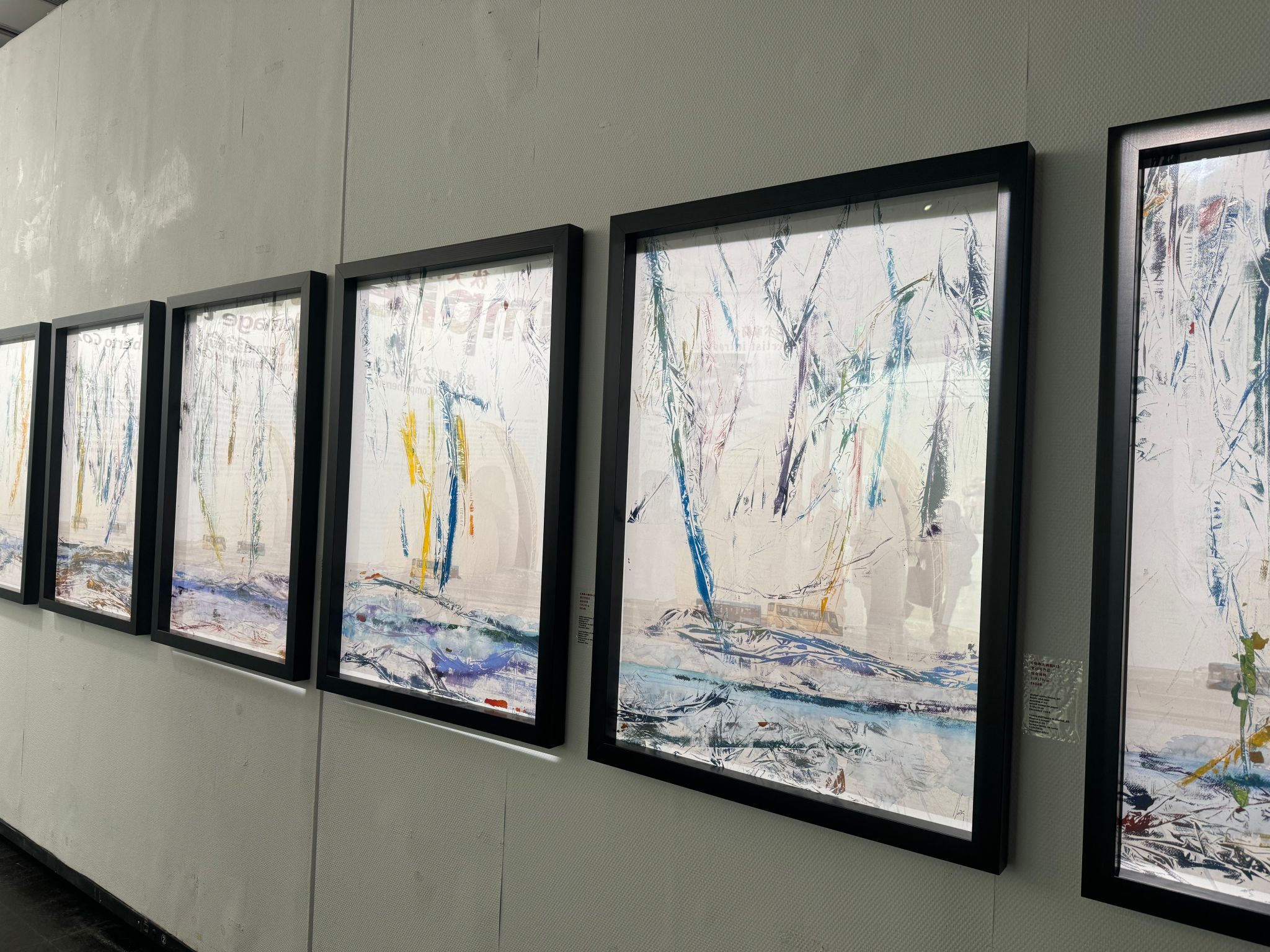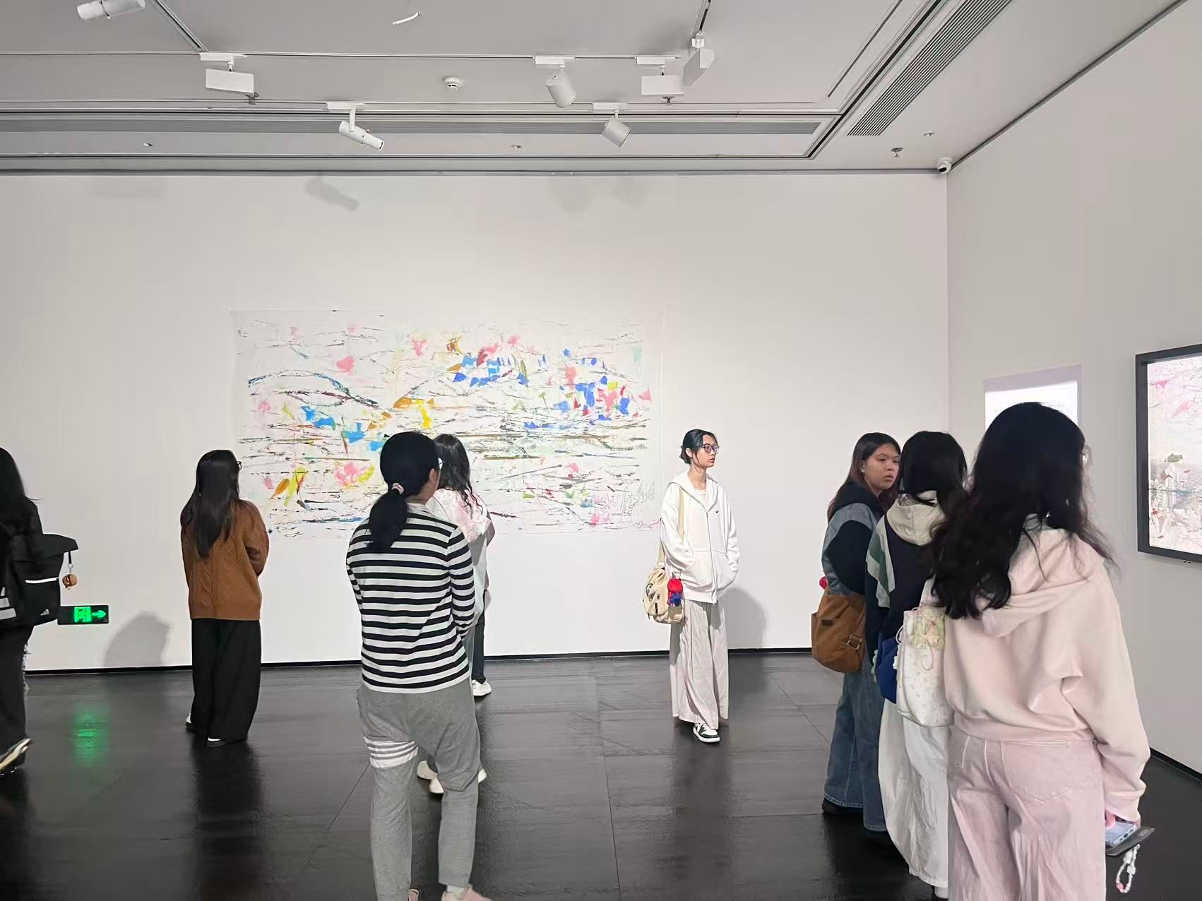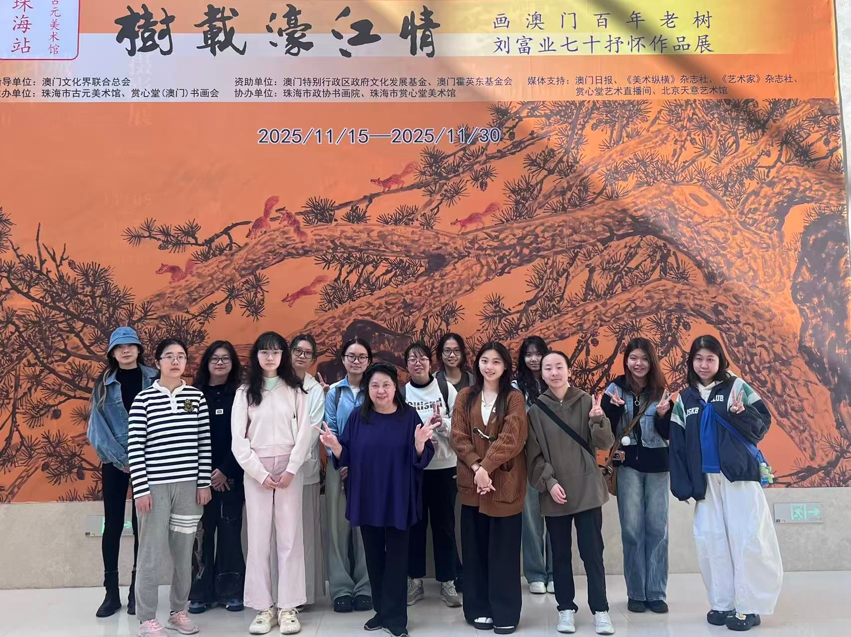 Beyond immersing themselves in Guyuan’s artistic world, the students also visited “Autumn Impressions: Homage to Zhuhai”, an exhibition of comprehensive material paintings by Italian artist Carlo Alberto Cozzani, embarking on another diverse aesthetic journey amid the collision and integration of Chinese and Western art. The exhibition boasts a uniquely creative spatial narrative, unfolding in three thematic chapters centered on Past, Present, and Future. Simultaneously, Chinese classical poetry is integrated to annotate the works, fostering cross-temporal interaction between visual images and literary text, which further enriches the layers and dimensions of artistic expression.