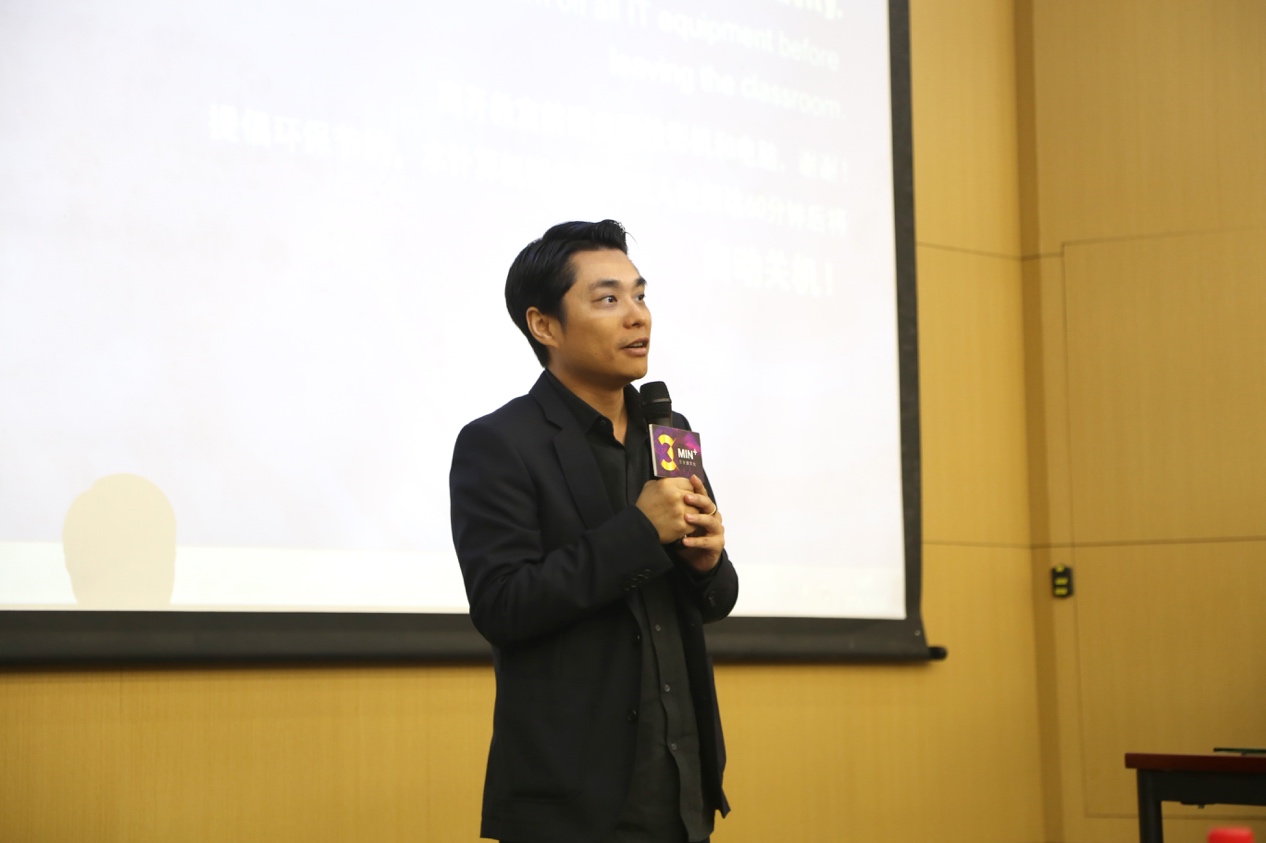 在参赛者与观众共同观赏了这次比赛的推荐短片《重生纪事》之后,何嘉达先生代表阿里巴巴对比赛理念和赛制进行阐释,并向同学分享电影制作项目落地将要遇到的问题。