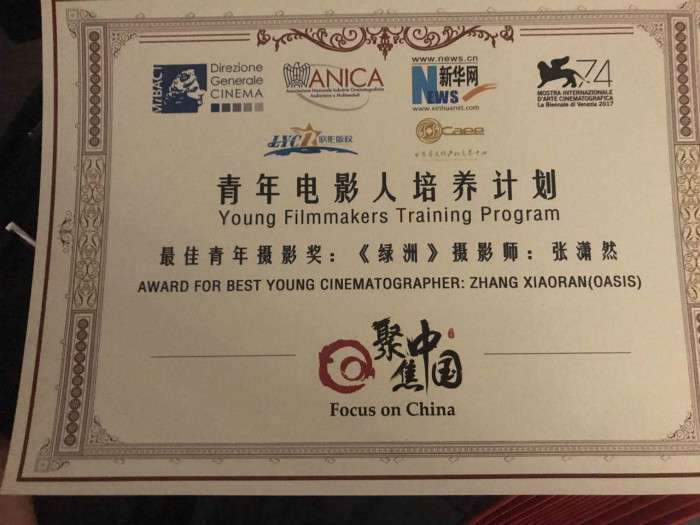 张潇然获得青年电影人培养基计划最佳青年摄影奖