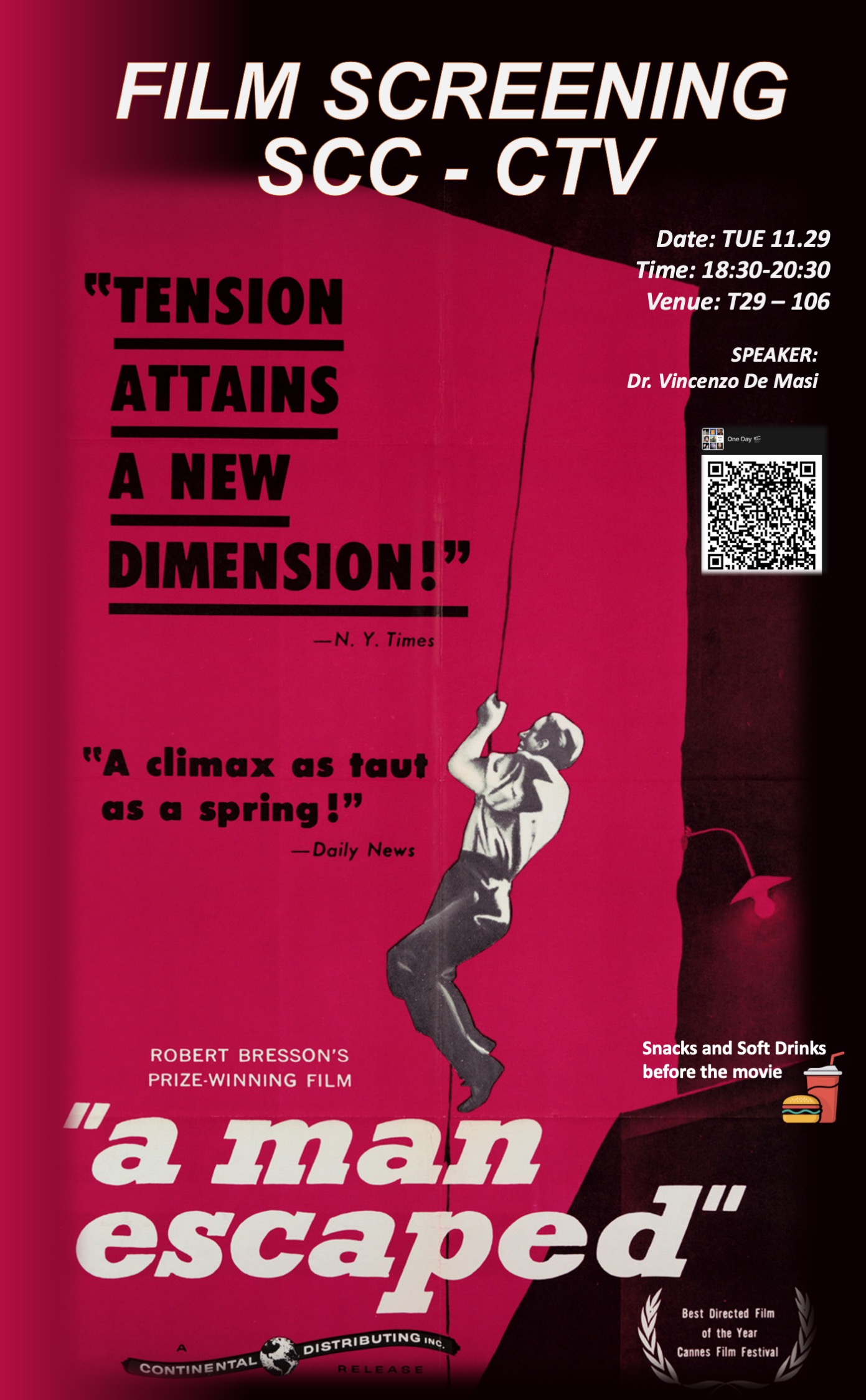 Film: A Man Escaped (1956) is a French prison escape film directed by Robert Bresson.