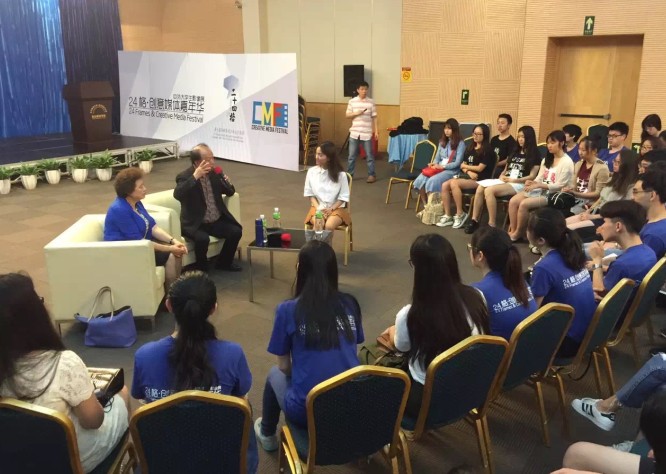 Famous Chinese director Li Qiankuan gives the thumbs up to students' creativity