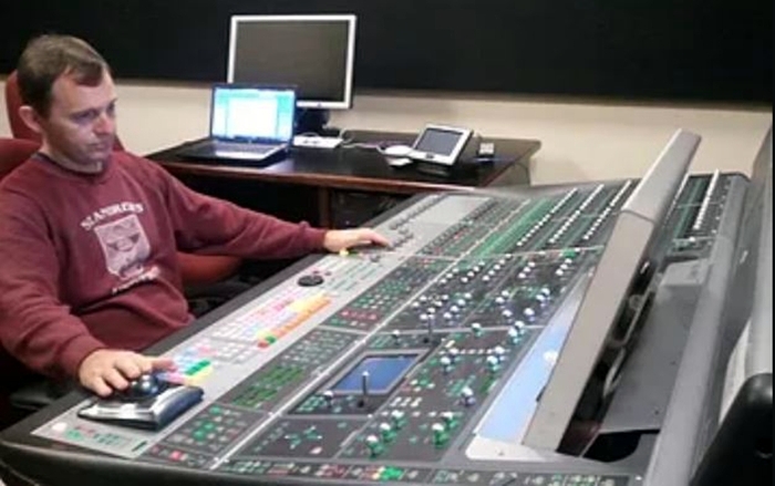 Andrew working as a mixer on students' films at the USC School of Cinematic Arts
