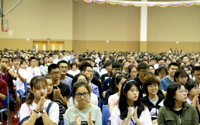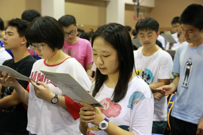Afterwards, the students who have received full entrance scholarships thanks to their impressive high scores on the Gaokao (National College Entrance Exam) were welcomed on stage to receive certificates for their remarkable achievements. They looked proud as they are recognized in front of their peers.