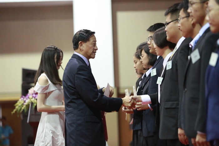 Students who recieved full entrance scholarships are personally congratulated by Prof Ng Ching-Fai