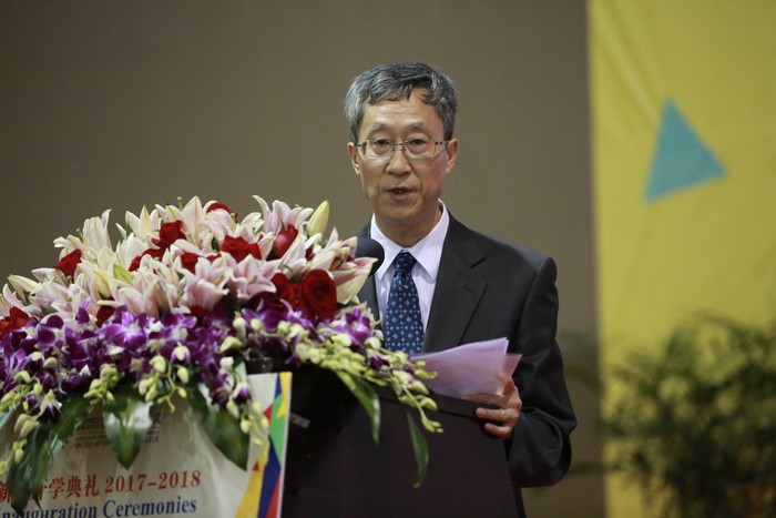 The Vice President (Students and General Affairs), Prof Zhang Cong, then gave his welcoming remarks to the new students. Prof Zhang Cong reiterated the significance of the new students deciding to study at a liberal arts college and encouraged them to accept as well as learn from the differences they encounter. He then introduced and congratulated the students receiving full entrance scholarships.