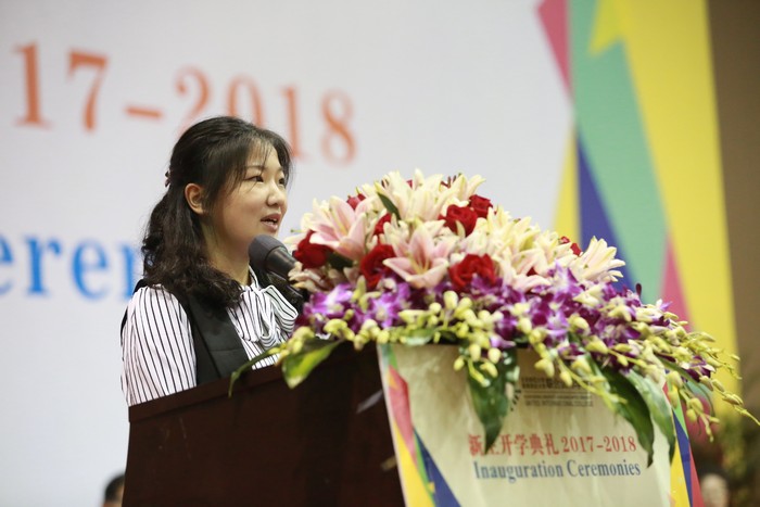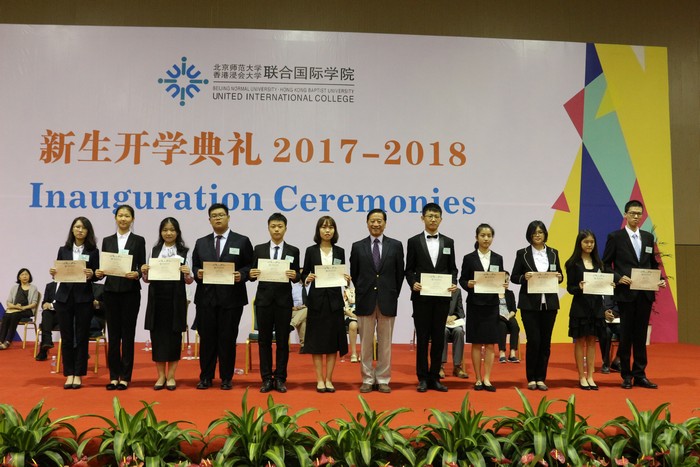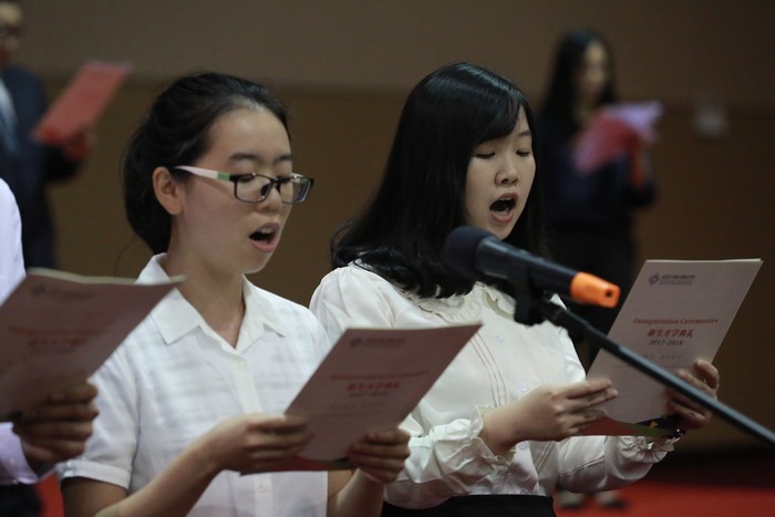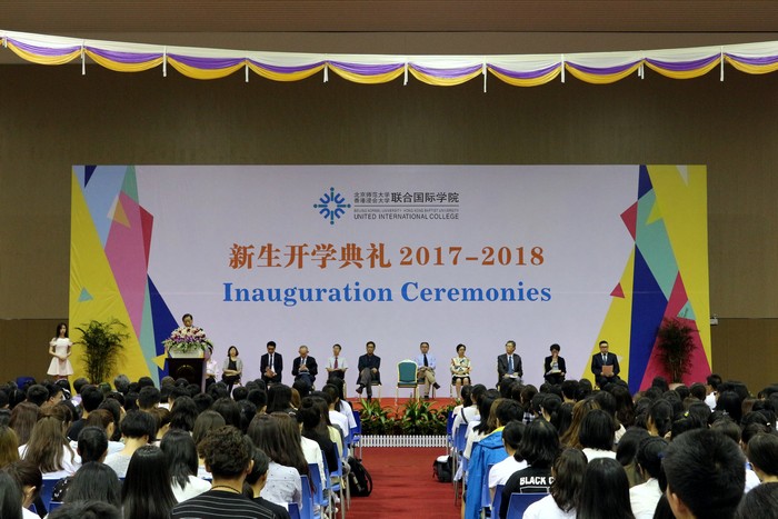 The ceremonies began with the Chinese national anthem and all students stood as it played. This was followed by a sing-along to UICs college anthem. To help the new students sing along, several senior students led the singing.