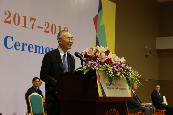 President of UIC, Prof Ng Ching-Fai, gave an officiating speech. He started the speech by introducing historical figures of Zhuhai and the surrounding area, since most students have come from other cities and provinces. Prof Ng Ching-Fai emphasized that UIC is a global community and shared his hopes for students of UIC to be part of making the future a better place.