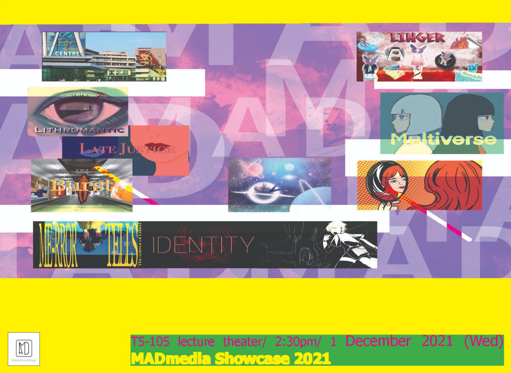 The “MADmedia Showcase” was held on 1 December 2021 at 2:30pm in T5-105. The showcase presented 13 group works from Media Art and Design year 2 students Introduction to Media Aesthetics course.