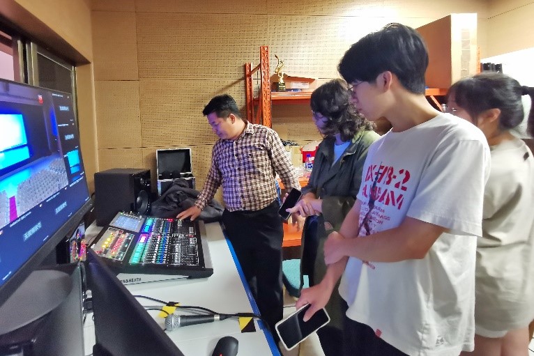 After the lecture, Mr. WU led the students into the control room to experience the lighting console and the sound mixing console. The hands-on experience allowed students to gain a deeper understanding of how audiovisual equipment can take performance effects and audience experience to new level.