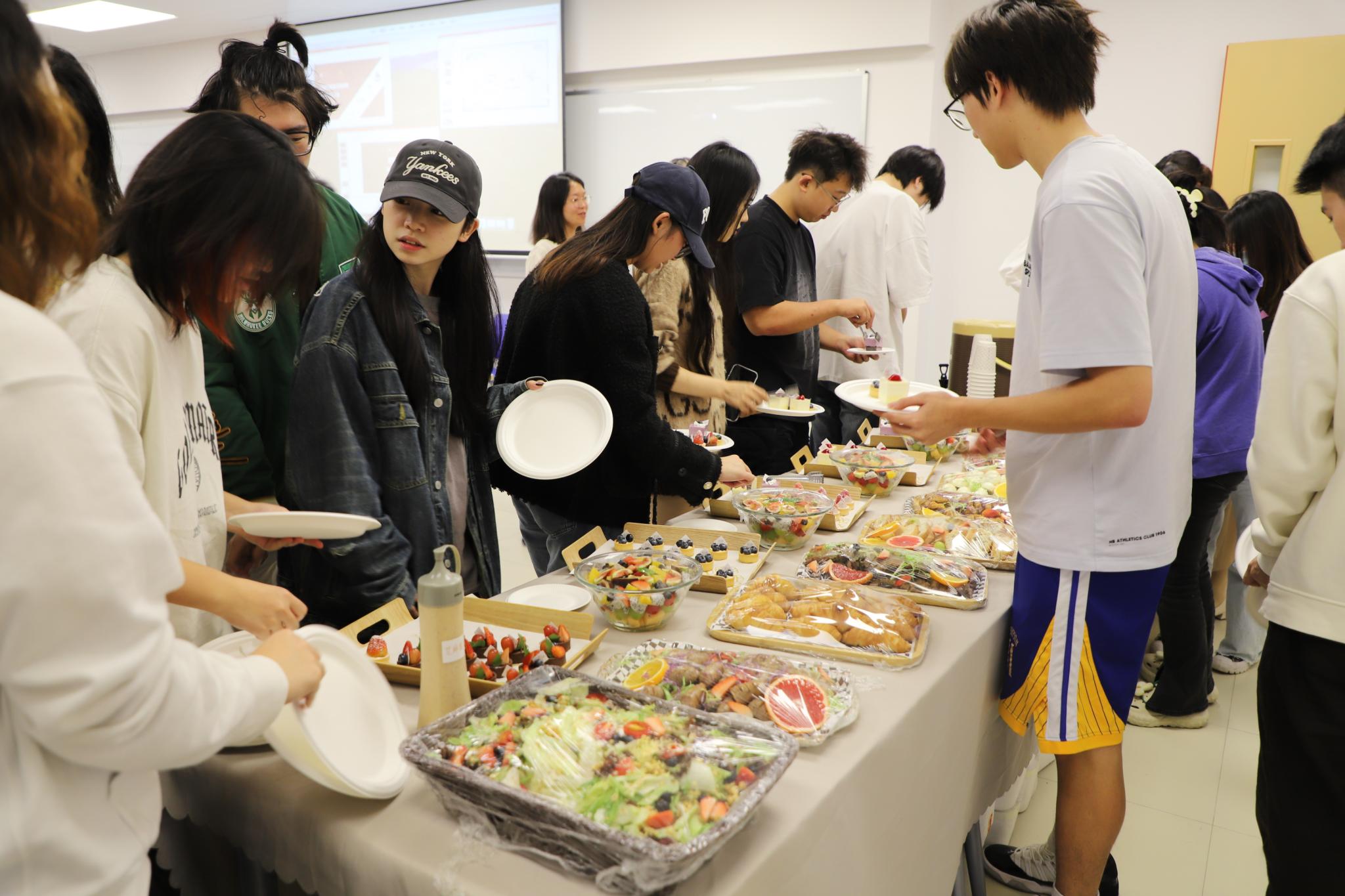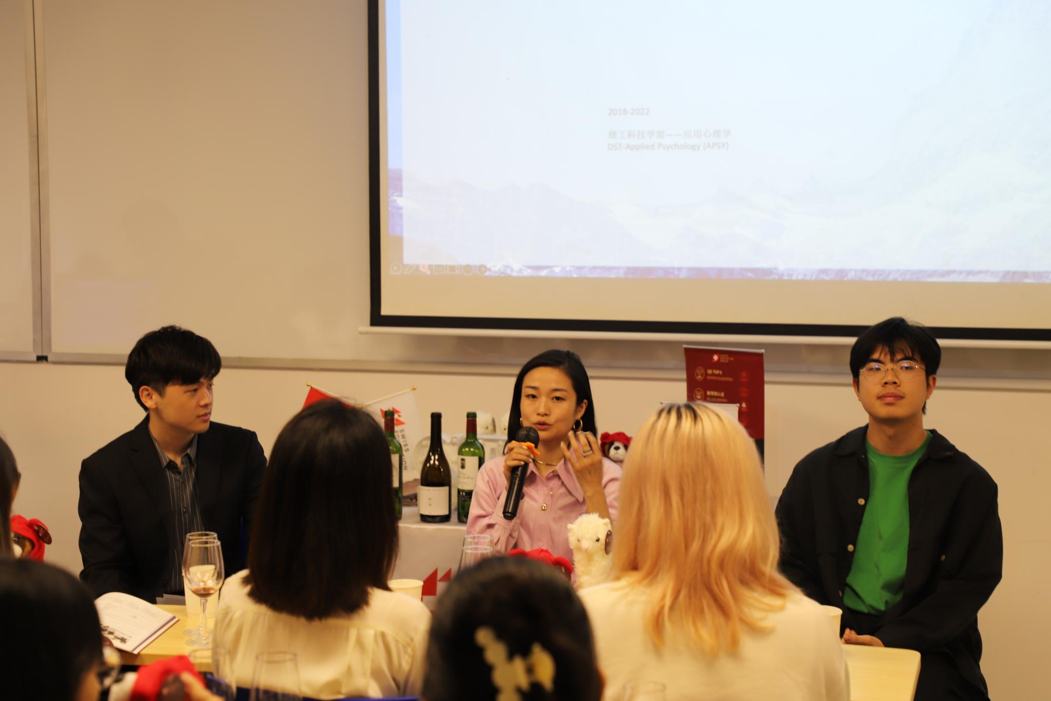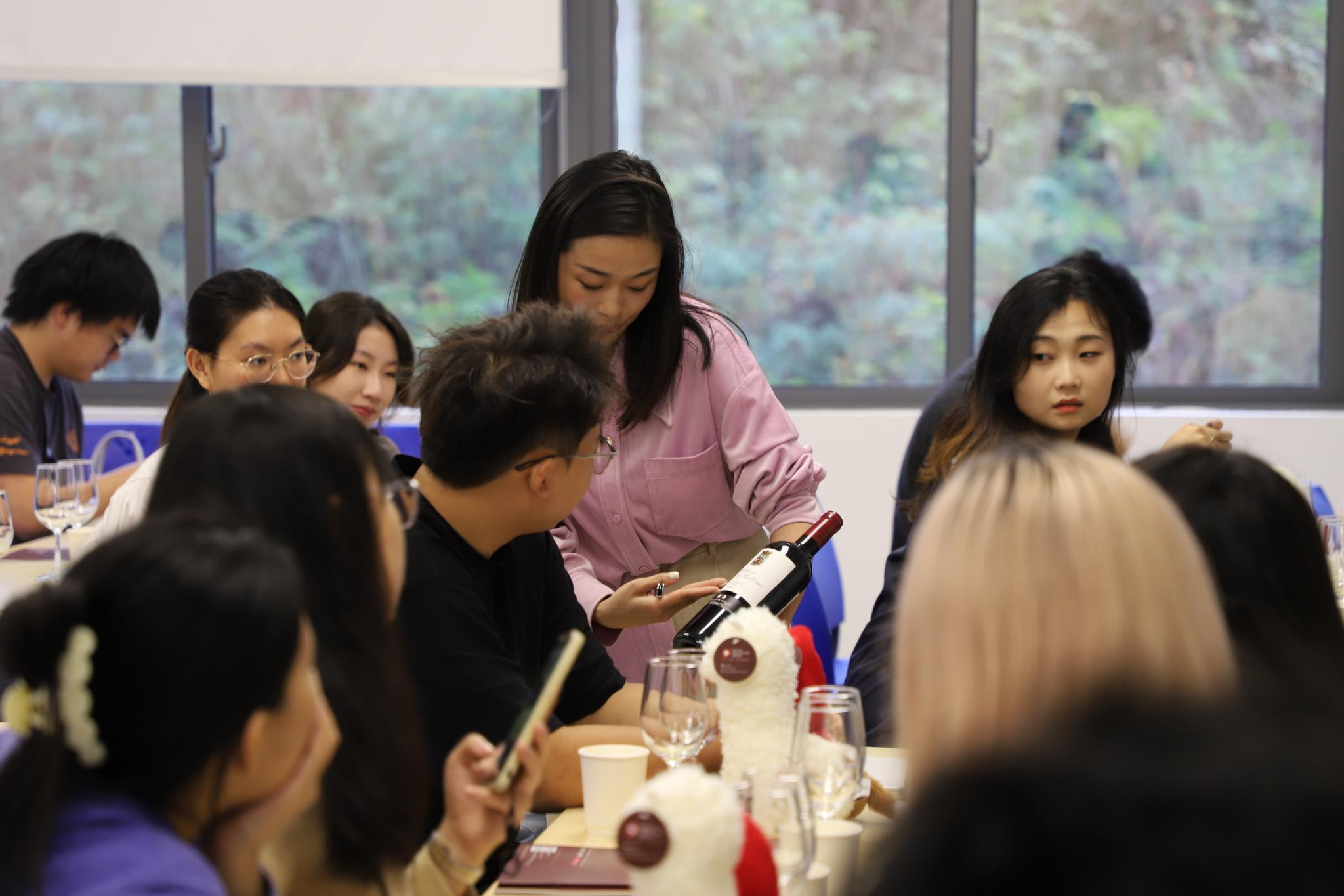 The event was divided into three parts: a wine tasting class, an alumni exchange and a Swiss Buffet. For the first part, Teresa started with introducing wine making, guiding the students to understand the materials and production of wine. For the later tasting, Professor Liheng Zhang tried to open the wine himself and Teresa demonstrated the teaching of wine opening and professional wine serving etiquette.