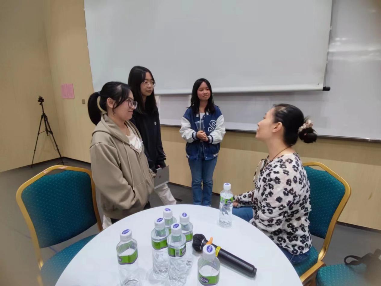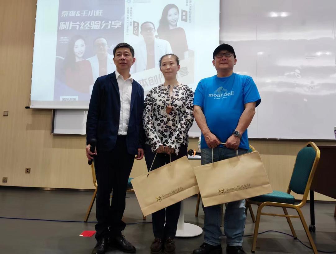 在问答互动环节,同学们积极提问,两位老师也针对学生的提问一一作答,并与他们分享作为编剧和制片人的心得体会及行业经验。