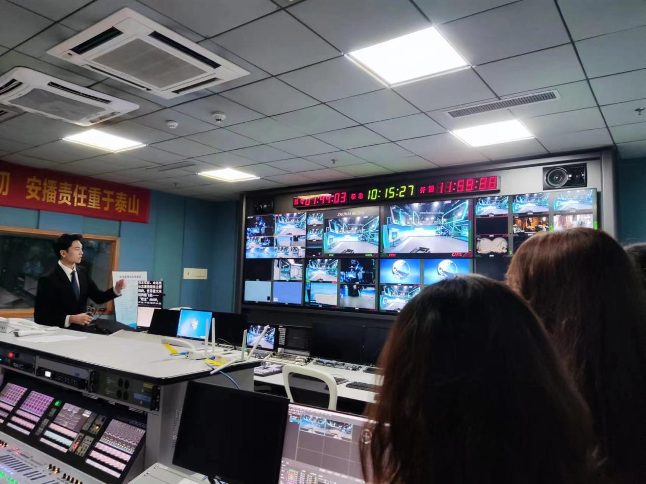 随后,同学们又来到导播室,与工作人员们进行了详细的交流,探讨播报时的种种细节。