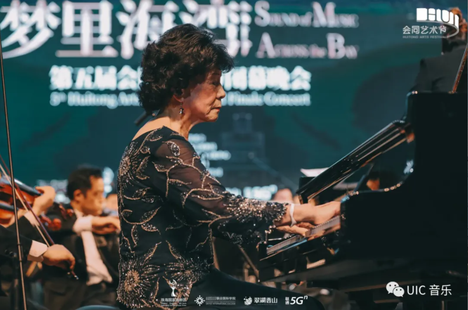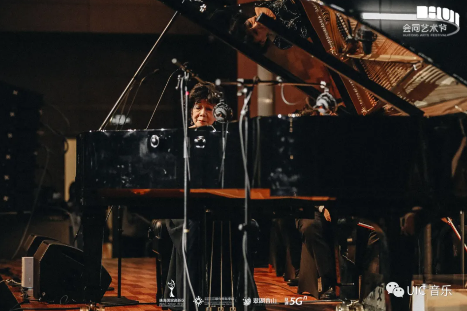 这位老艺术家在聚光灯下散发着迷人的金色光芒,吸引了全场的目光。她灵活的双手在琴键上飞舞着,展示着冰冻三尺非一日之寒的功力,令人钦佩。