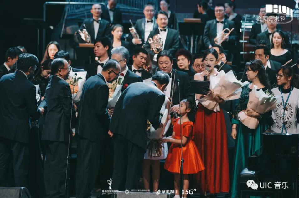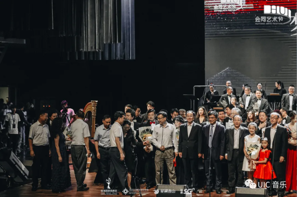 演出结束,学生志愿者们上台为演奏者们献花。会同艺术节在大型交响诗音乐会“梦里海湾”的完美谢幕中落下帷幕。