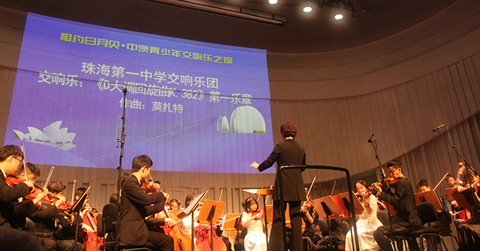 2019年12月21日晚,应澳大利亚新金山交响乐团(ANGO)邀请,北师港浸大(UIC)交响乐团参与了“相约日月贝·中澳青少年交响乐之夜”的音乐演出,与澳洲新金山交响乐团、珠海市第一中学交响乐团一同为市民带来了一场融合中西文化的音乐盛宴。