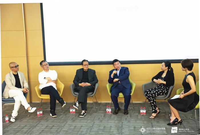 (左起)罗三、黄家能、李佑宁、张同祖、北师港浸大协理副校长魏楚雄、周伟、北师港浸大麦莉娟教授在启动仪式上