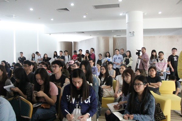 讲座吸引了传播学、公共关系与广告学及文化创意与管理专业等120多名学生前来倾听,现场座无虚席。讲座后,现场听众与John Aiken教授互动。