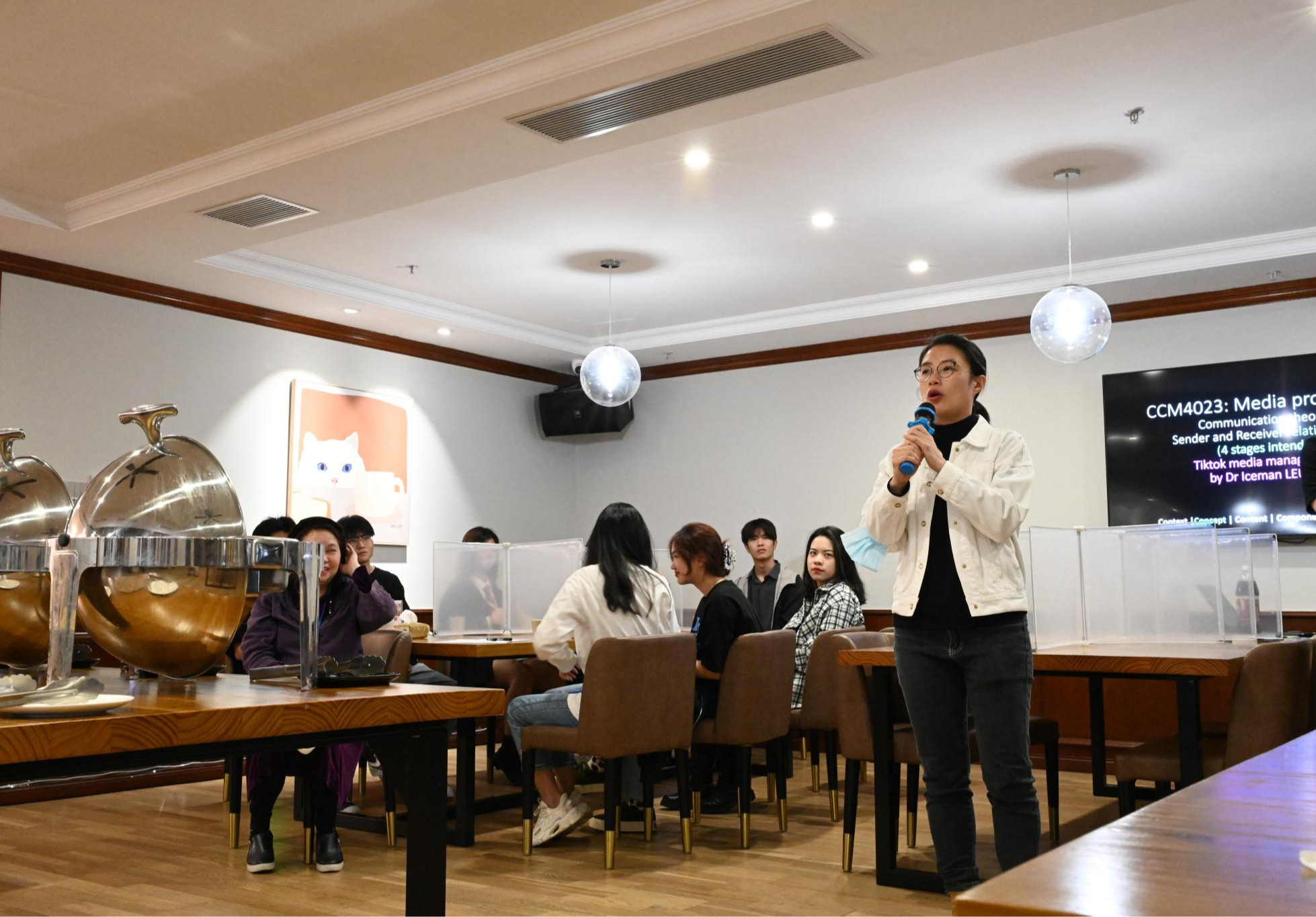 破冰晚宴还邀请了CCM专业的老师:吴佩仪博士、 石磊教授、梁海勇博士、王兮博士、万婉琪女士,他们对新同学致以温暖的问候,并介绍了CCM专业概况及课程设置。