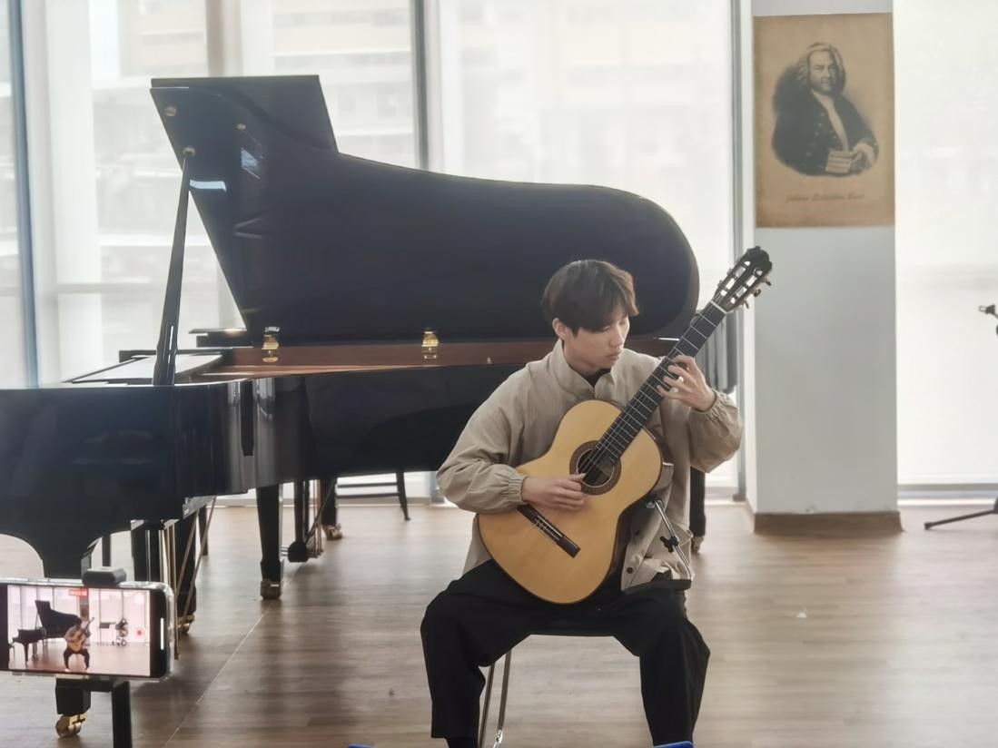 刘咏图同学带来的是由萨蒂的钢琴曲改编而来的中提琴曲《裸体歌舞》,细腻典雅的音乐从刘同学的指尖淌出,让人沉醉其中。