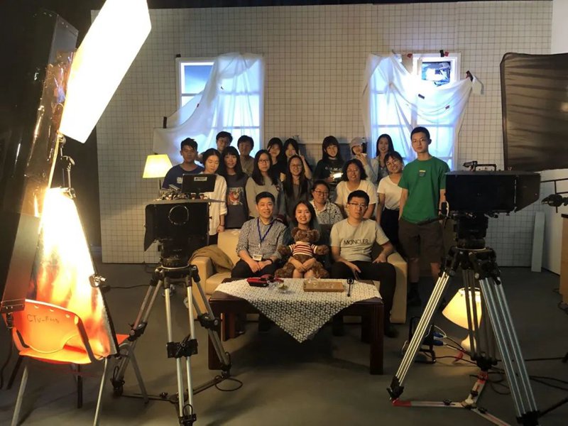 副教授蒋崴(前排左一)与学生在片场