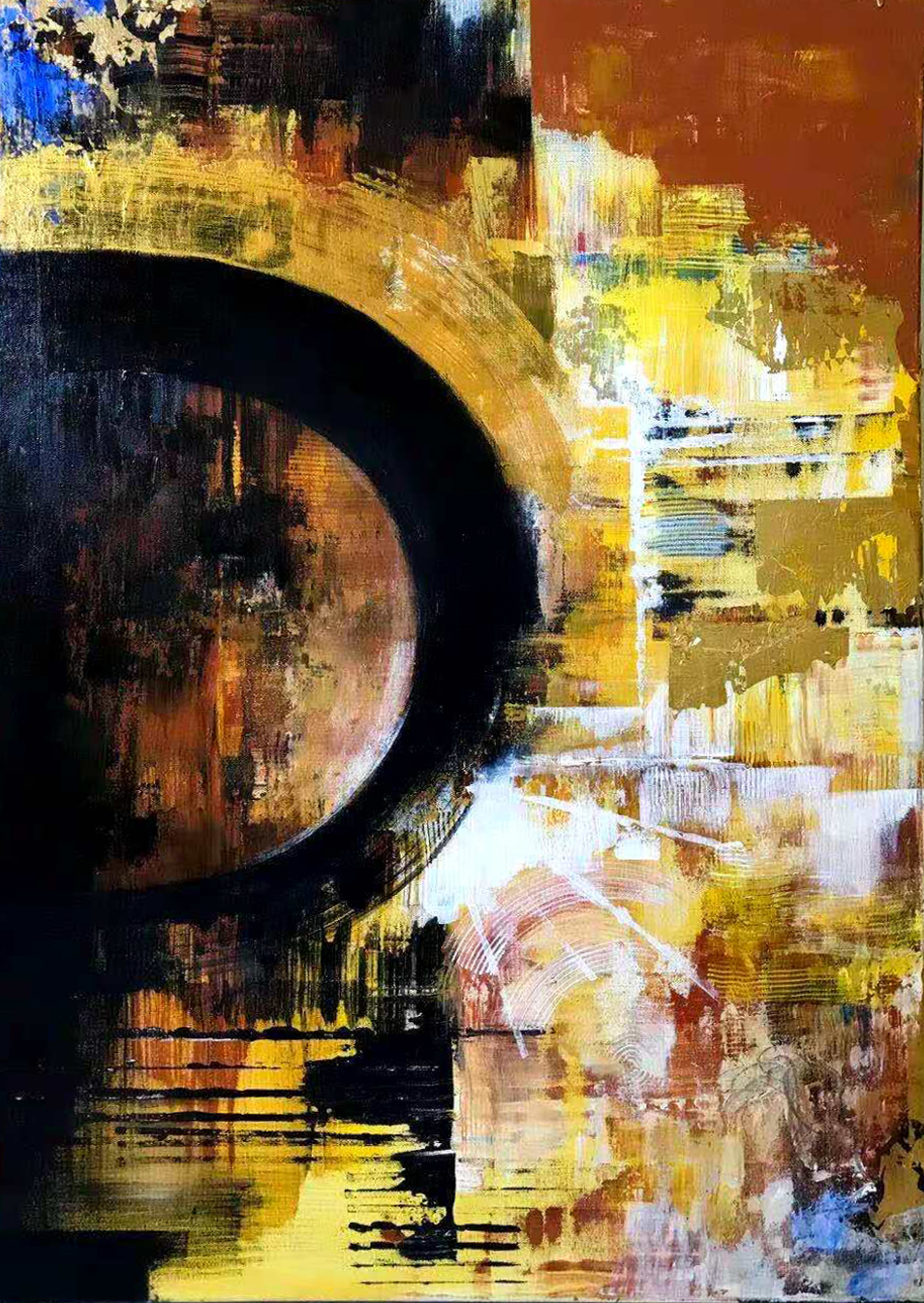 邝志文通过在画布上不断地建立与破坏空间、形状与色彩之间的关系,抽象剖析自我,“重复这个过程,直到不能再推进,达到内心的安静和平衡,才完结了这幅作品。”