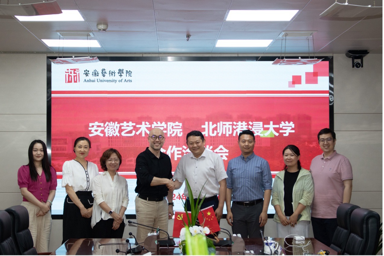 2024年6月25日下午,UIC文化与创意学院院长庄以仁教授一行借在合肥招生机会,抽出时间专程来到安徽大学和安徽艺术学院开展校际交流活动,并分别与拜访单位进行了座谈交流。两所院校对庄以仁教授一行的到访表示了热烈欢迎,座谈双方在相互介绍校情院情之后,深入交流了各自课程设置与教学情况,并就加强今后的交流与合作达成了初步意向。安徽大学国际交流处胡学文处长、艺术学院刘权院长、田雅丽副院长、党委书记汪勤及有关系科负责人;安徽艺术学院国际交流处陈明处长,对外合作部丁凡主任, 教学管理部阚侃主任等出席会谈。UIC文化与创意学院庄以仁教授、影视与新媒体系系主任卫改兰博士、音乐系汪洁副主任参加了交流座谈。