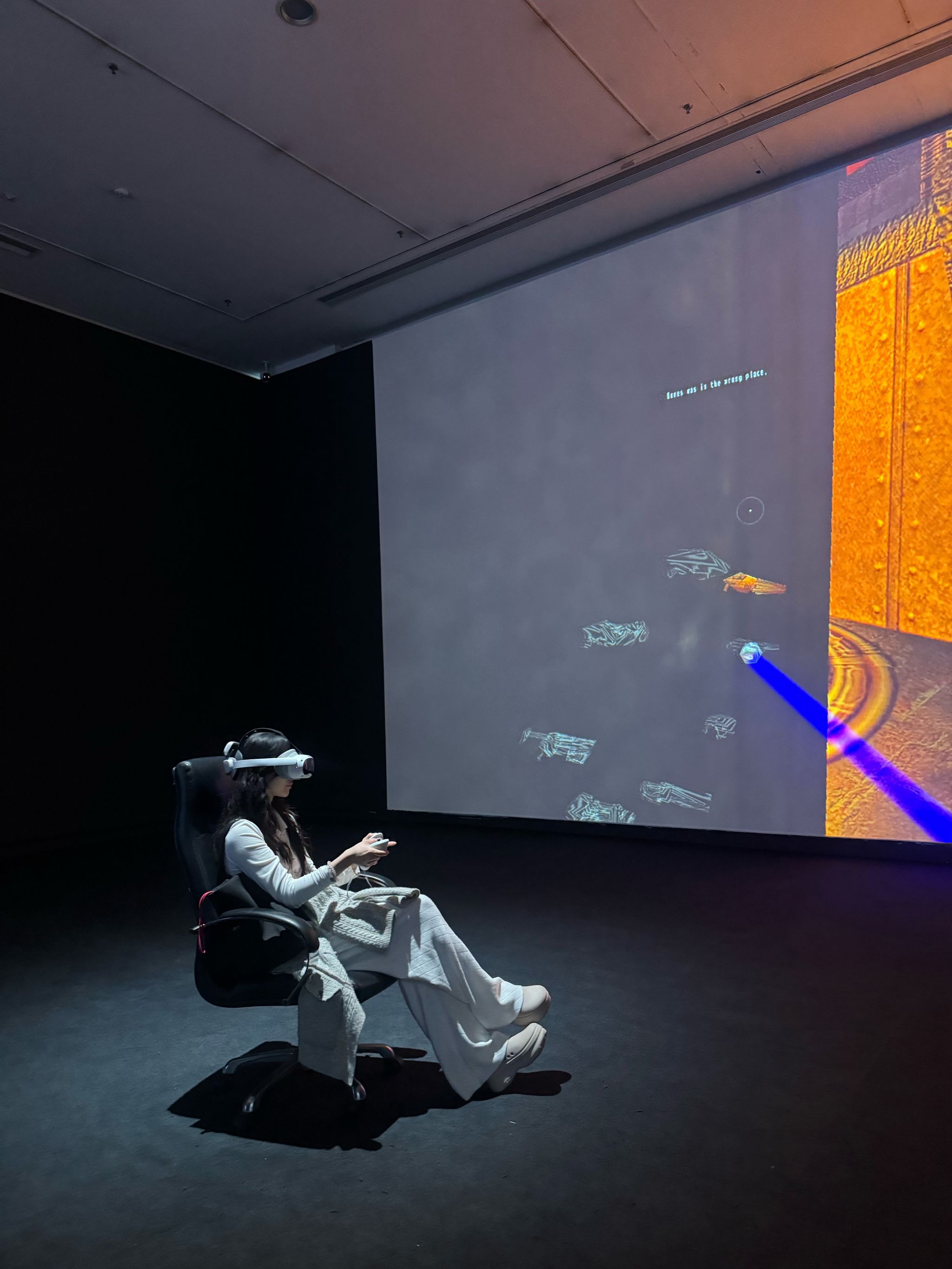 随后还参观了由广州美术学院、中国美术家协会数字艺术艺委会主办的湾区艺术与科技三年展。展览通过影像、装置等形式,展现潮汐节律、咸水记忆及涌动边界三个核心板块,呈现了技术对社会节律、文化保存及边界形态的影响。