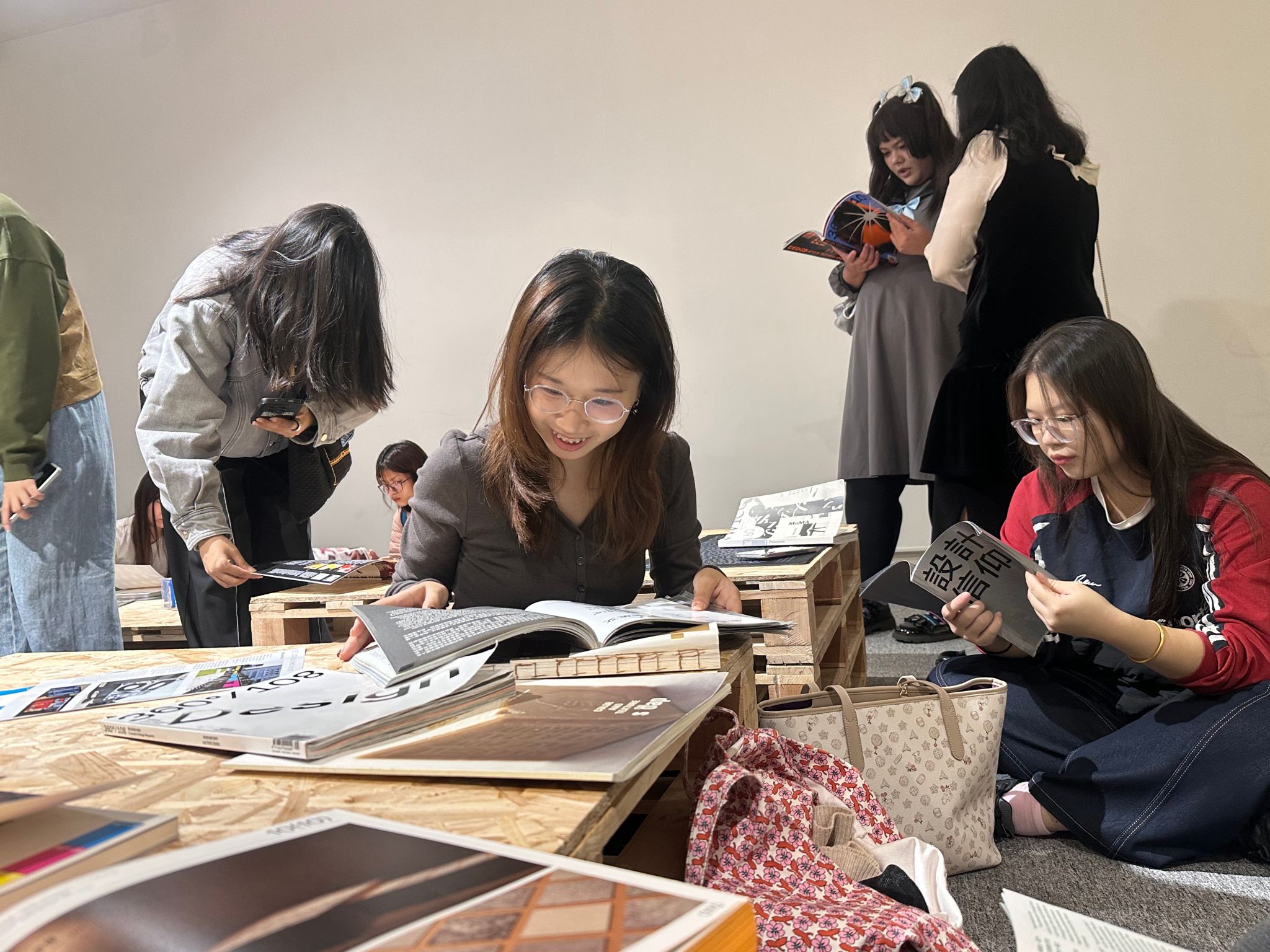此外,师生还在展览阅读区进行了阅读和讨论,开展了一次优秀创意设计案例和文化实践活动的案例学习。同学们与老师一起翻阅了大量有关社区改造、公共设施设计的杂志读物以及设计年鉴书籍,并将其与小组作业及实践项目相结合的讨论。