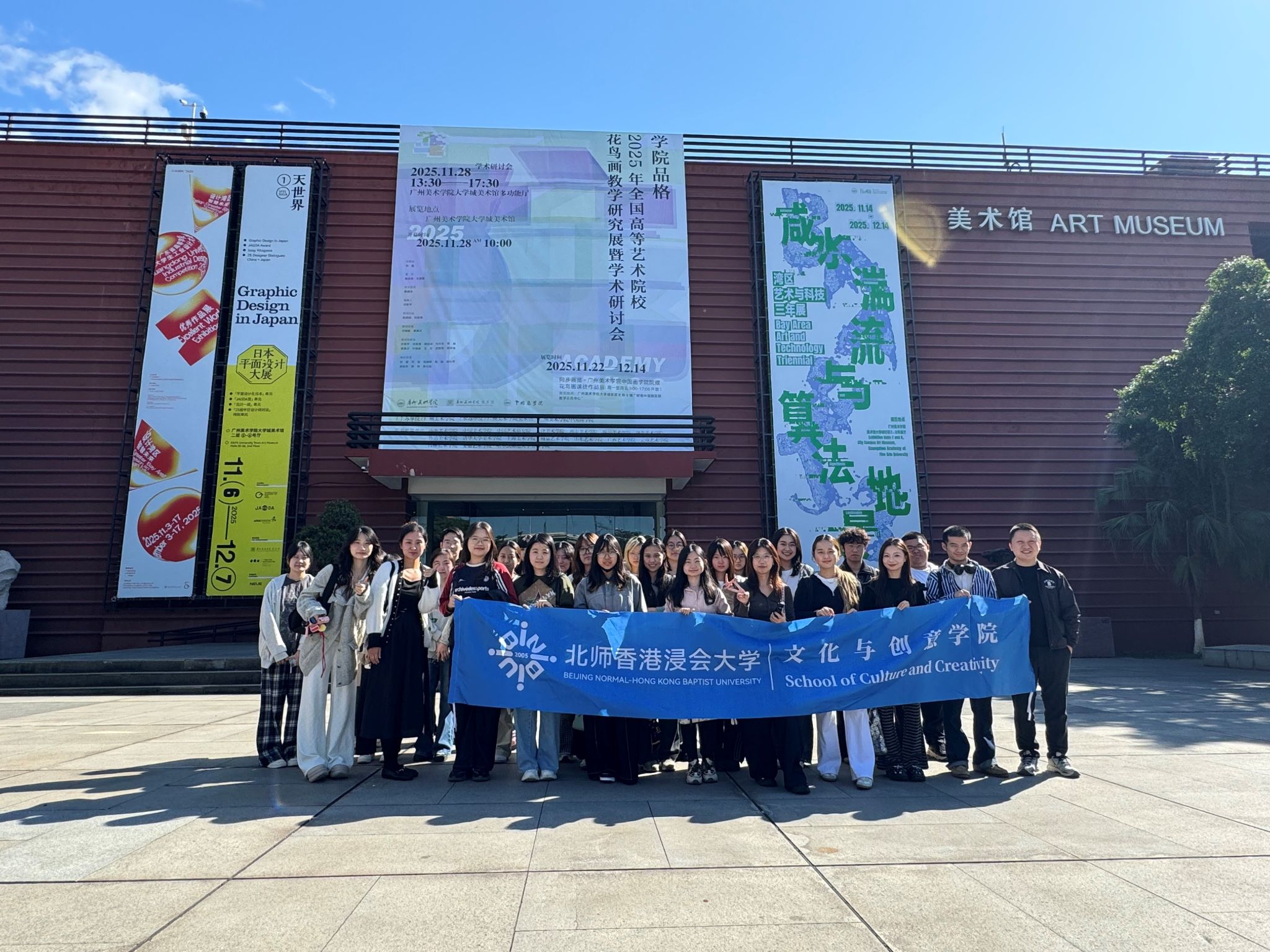 2025年11月22日,文化创意与管理专业《国际文化贸易课程》的全体同学在专业主任、副教授王兮博士以及导师罗卓老师的组织下,前往广州美术学院美术馆进行参观学习。本次参观聚焦美术馆所设的两大主题展览:日本平面设计大展和首届湾区艺术与科技三年展。