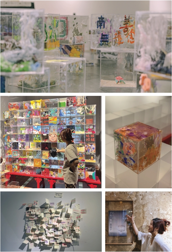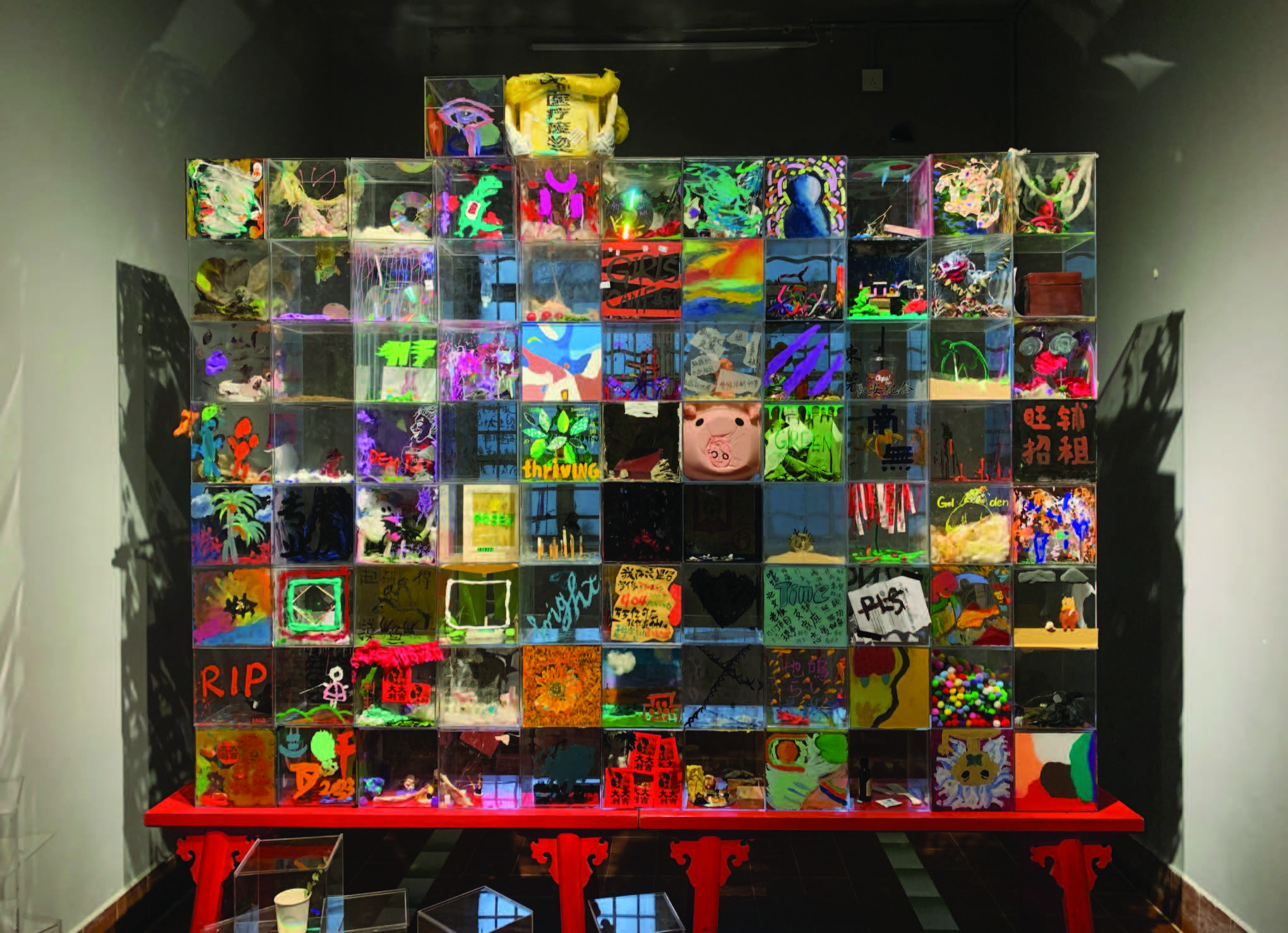 这是一个个人公共计划的尝试。在三四月的须臾欢忭艺术空间,整个项目包括需要公众参与制作的公共艺术作品、画作展览和实验影像作品展览三个部分。我邀请每个来到须臾欢忭艺术空间的顾客参与进来。我为大家提供的仅仅是空盒子和一些各种各样的材料,但每个人创造出来的盒子都具有鲜明的个性与风格。在项目的最后,我将所有盒子砌成一堵墙。这堵奇怪的砖墙不仅是大家创意的集合,也是这个小社区人文生态的缩影。大家在塑造它的同时,它也在映射着这个地方。展览,艺术空间与观众的交映与互动随之显现。作为整个项目的发起人,我希望大家可以尝试用别样的方式去做沟通,同时也希望通过这种有趣的方式可以拉近艺术、艺术空间、社区与大众多方之间的距离,使得艺术可以悄悄地融入大家的生活。