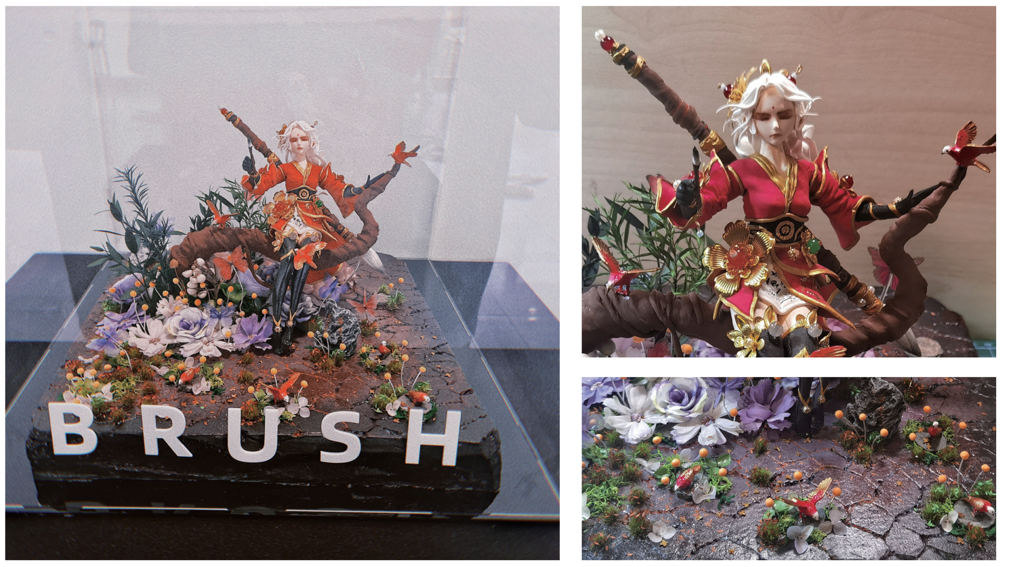 《神笔》是一个结合插画和雕塑的三维叙事性场景模型。一副插画能传递很多信息,因为其中的视觉元素都具有叙事性。 插画师们总会在画里藏匿一些线索来使观众进行探索,例如一个末日题材的插画,里面会出现破旧的交通工具,倒塌的楼房等等。然而,观众能得到的线索是有限的,因为插画是平面的(二维的),所以观众看不到画面的侧面或者背面, 这样就会影响观众对线索的推测,同时也会影响插画师们的创作。因此,我尝试结合雕塑的立体优势和插画的视觉优势,以超轻黏土为主要材料制作一个三维场景模型。在这个模型中会 有一些隐藏的线索,需要观众用一些工具来探索这些线索,以此来丰富这个模型的故事背景,并且能让观众了解这个模 型想说一个怎样的故事。