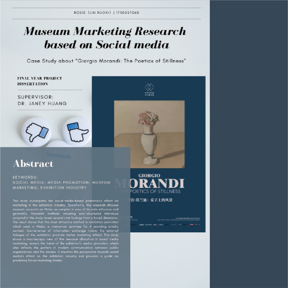 本研究调查了基于社交媒体的营销在展览业的影响。具体而言,本研究以微博上的博物馆账号作为样本,因为微博具有影响广,普及度高的特点。研究方法包括在研究中采用的半结构化访谈等。研究结果表明,微博最吸引人的展览推广方式是互动活动,因为它提供了艺术语境;信息交流的便捷性,使展会的外部联系增加,促进了更好的营销效果;本研究展示了社交媒体营销资源配置的宏观视角,讨论了展会媒体推广的趋势,也反映了现代公共组织与大众传播的模式。研究旨在丰富社交媒体对展览业影响的视角,并为预测未来的营销模式提供一定指导。