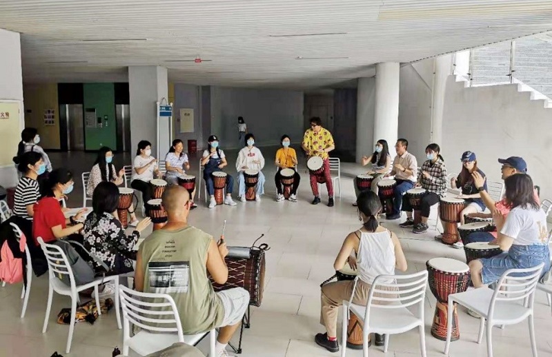 Fig. 7. UIC students participated in Drumming-Beating-ON-Your Heart
