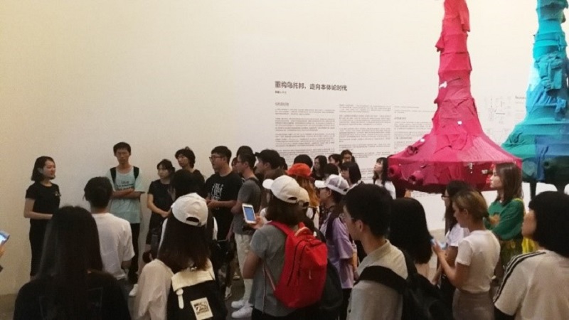 Fig. 5. One of OCAT staff shared the artistic exhibition with the MAD students