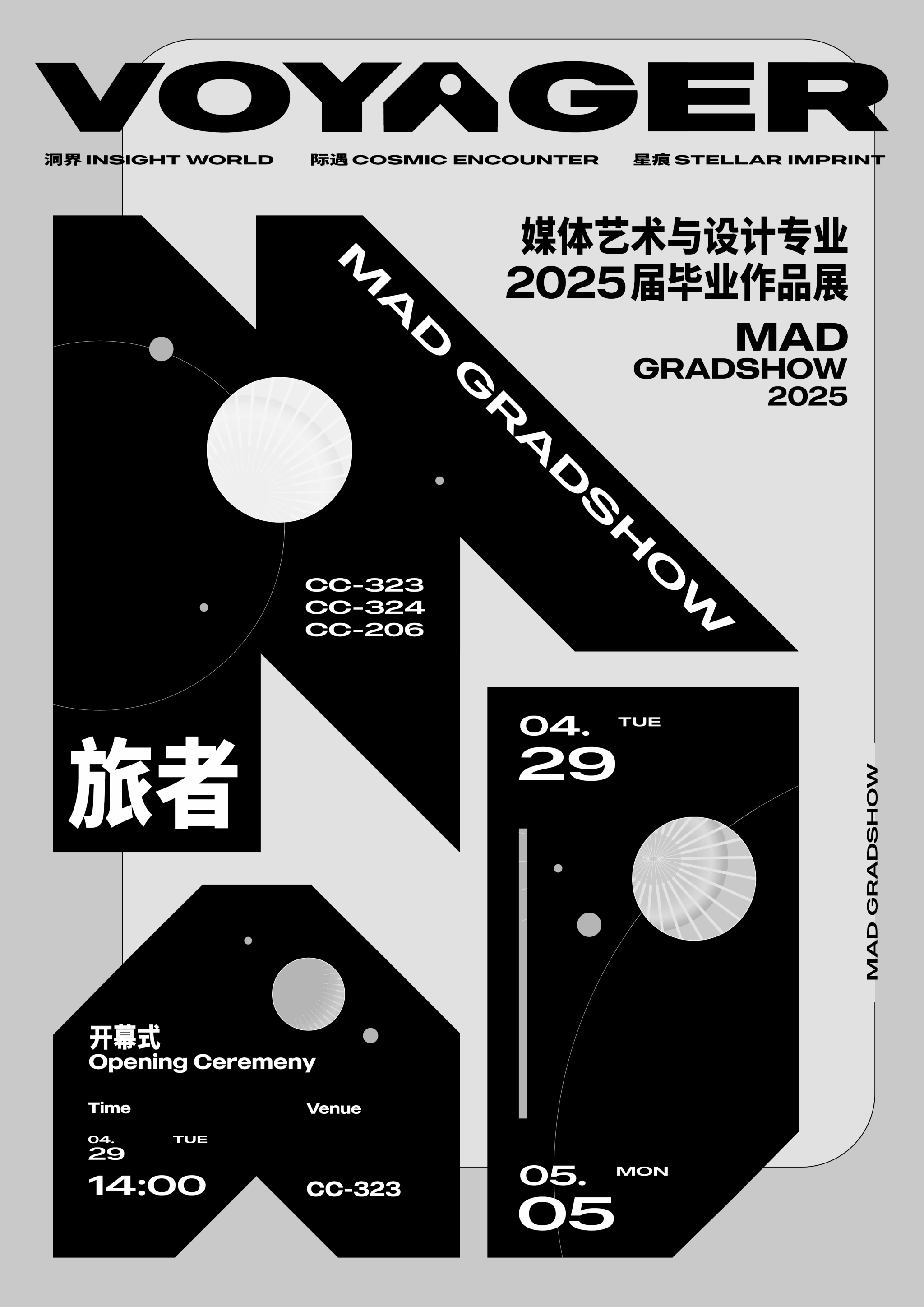 The Grad Show will take place in three halls: CC-323, CC-324, and CC-206. The show will feature over 50 works, including dissertations, graphic design, video art, photography, installation art, interactive design, game design, and more. It is not only a showcase of works but also a witness and refactoring of the intersection of time and space, documenting the creators' ideological changes and personal growth during the creative process. It also provides an opportunity for viewers to engage in dialogue with the creators' souls.