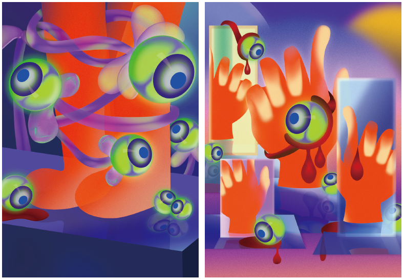 Nightmare is an illustration work based on Wantong Liao’s dream. Dream is used as containers to present images full of imagery from the inner perspective, expressing the fantastic and strange scenes in dreams. The viewer can dive into the unconscious realm and think about the meaning behind the dream and hidden in the subconscious.