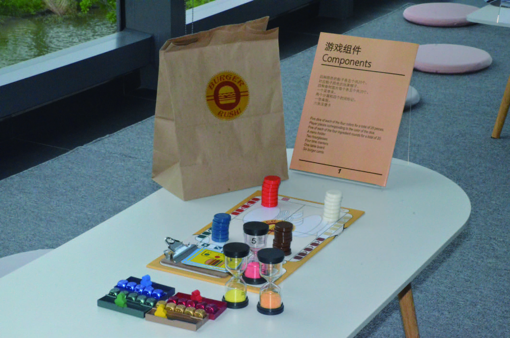 Burger RUSH! is a timed cooperative dice board game for two to four players. Players will play as burger store employees and cooperateto finish customers' orders. If all orders are completed correctly withinthe time limit, the players win the game immediately!