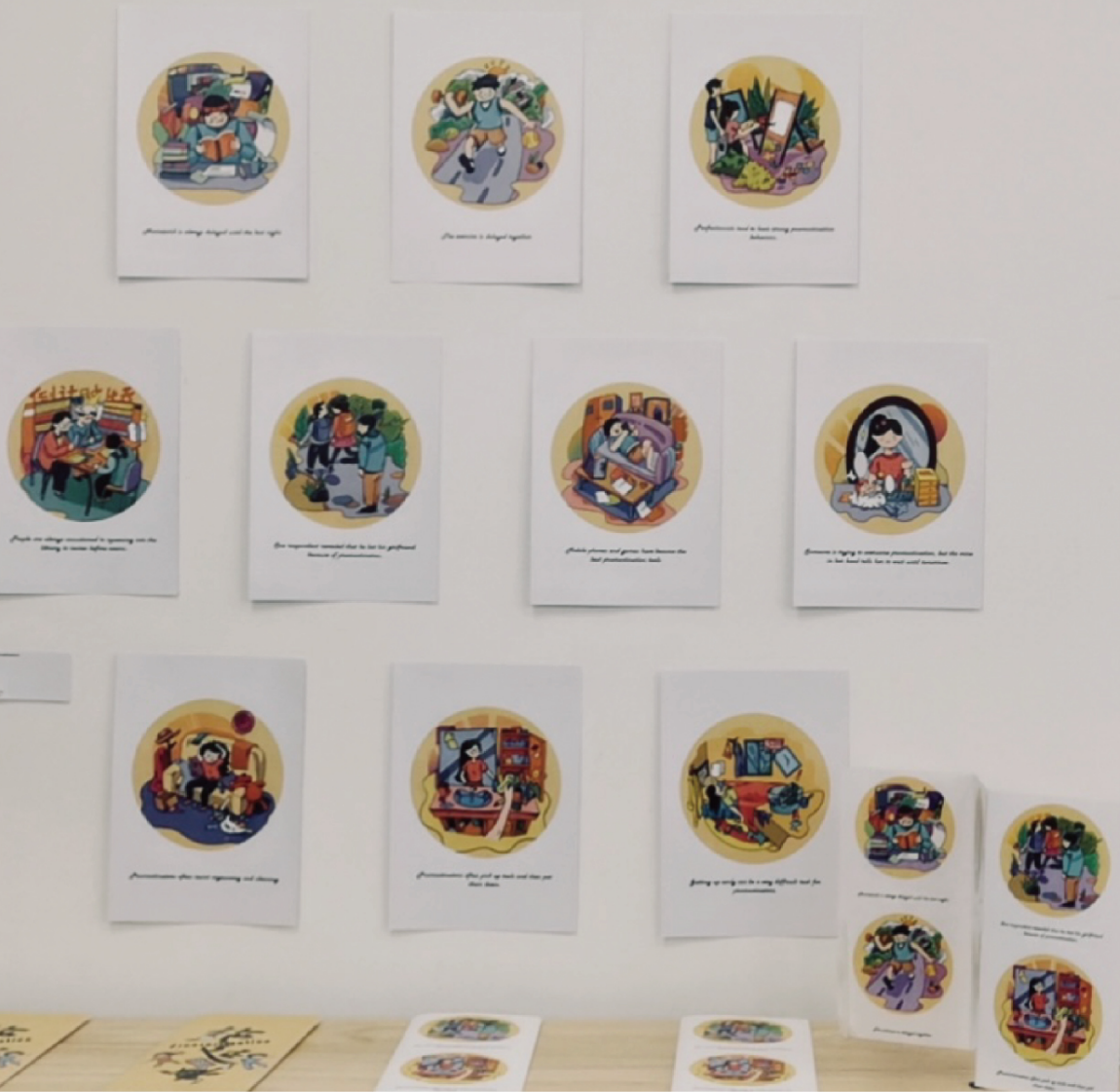 Procrastination is a term that has become popular inrecent years. It mainly means that people will choose various ways of consuming time rather than work orstudy. People are always used to putting tasks before times runs out. So my FYPworks want to help people realize the seriousness of the question through some illustration creation. In the illustration, I created two protagonists, a man and a woman, and used their perspectives to tell 10 stories about procrastination.